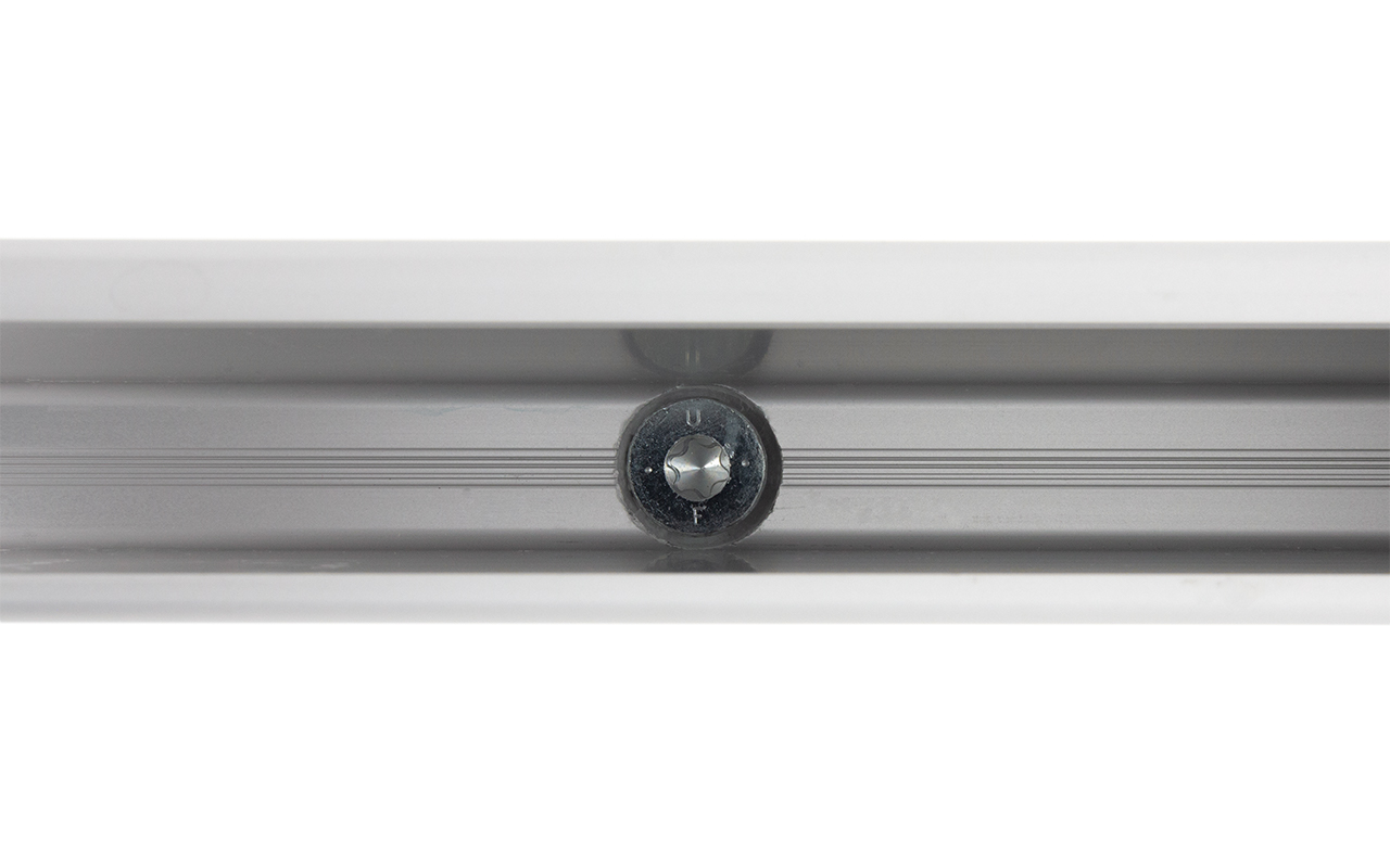 Крепление на горизонтальную поверхность через отверстия, просверленные в нижней части профиля. Для этого мы заранее изготавляваем профиль с уже просверленными на заводе отверстиями с фаской.