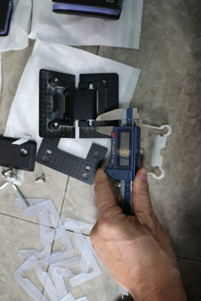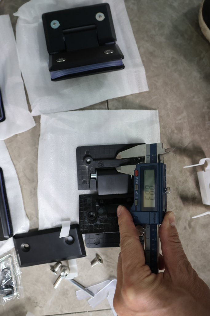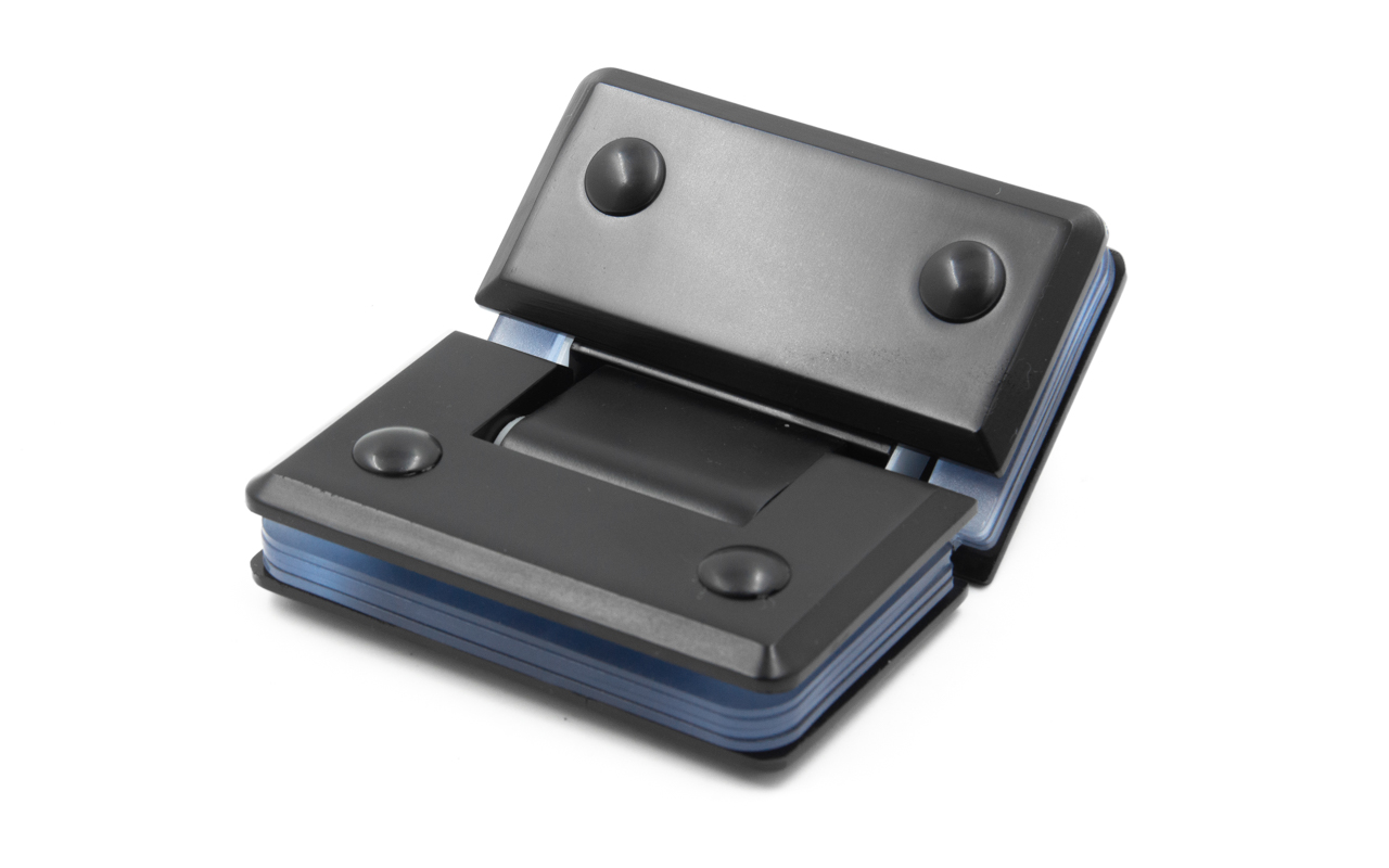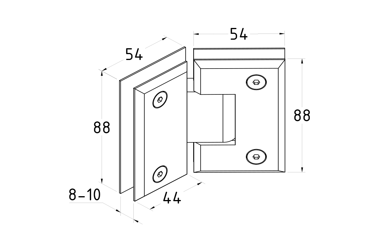 Петля стекло-стекло крепится с обеих сторон на стеклянные поверхности, плотно прижимаясь к ним своими металлическими зажимами.