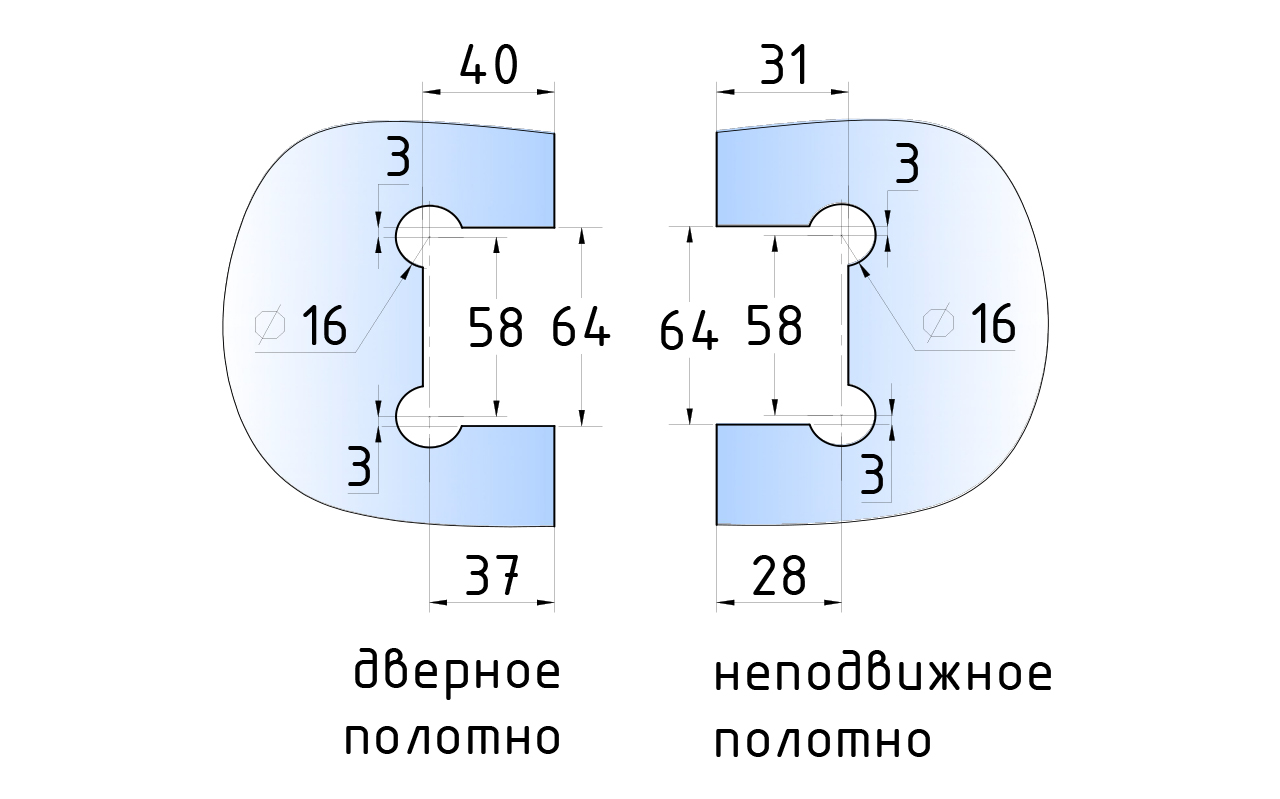 Крепление предусмотрено с двух сторон на 4 винта со шляпками заподлицо (по 2 винта на каждую сторону). Размер одной стороны петли составляет 90х55 мм.