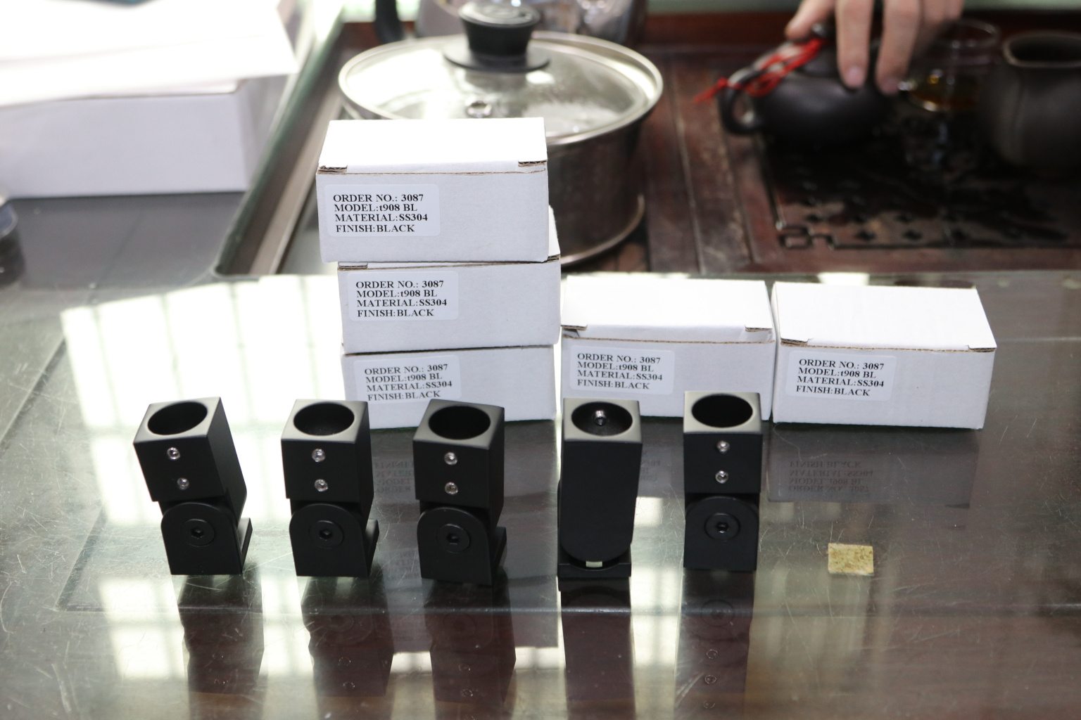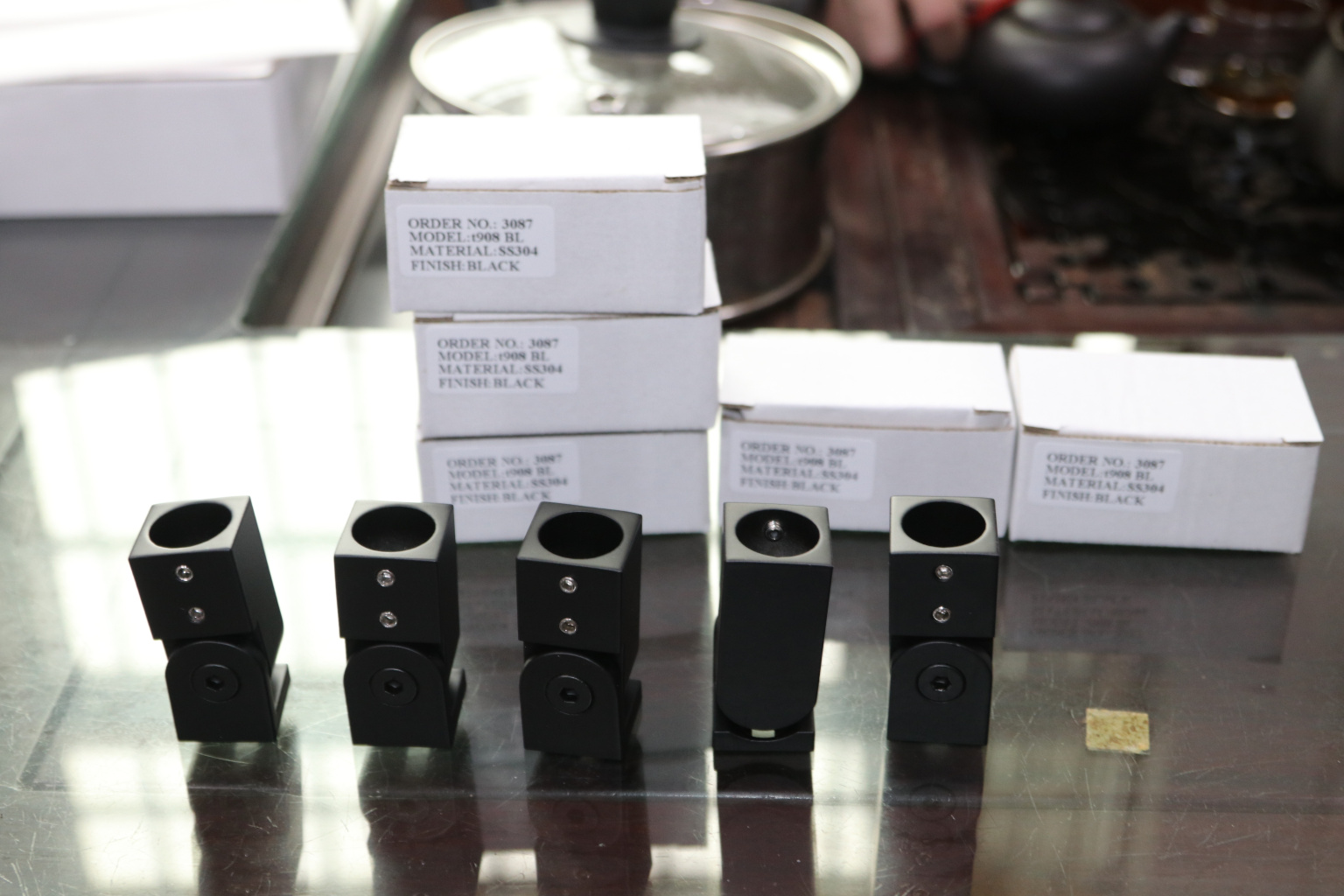 Держатель трубы регулируемый, под  трубу диаметром 19 мм. Поверхность - черная, материал - нержавеющая сталь AISI 304