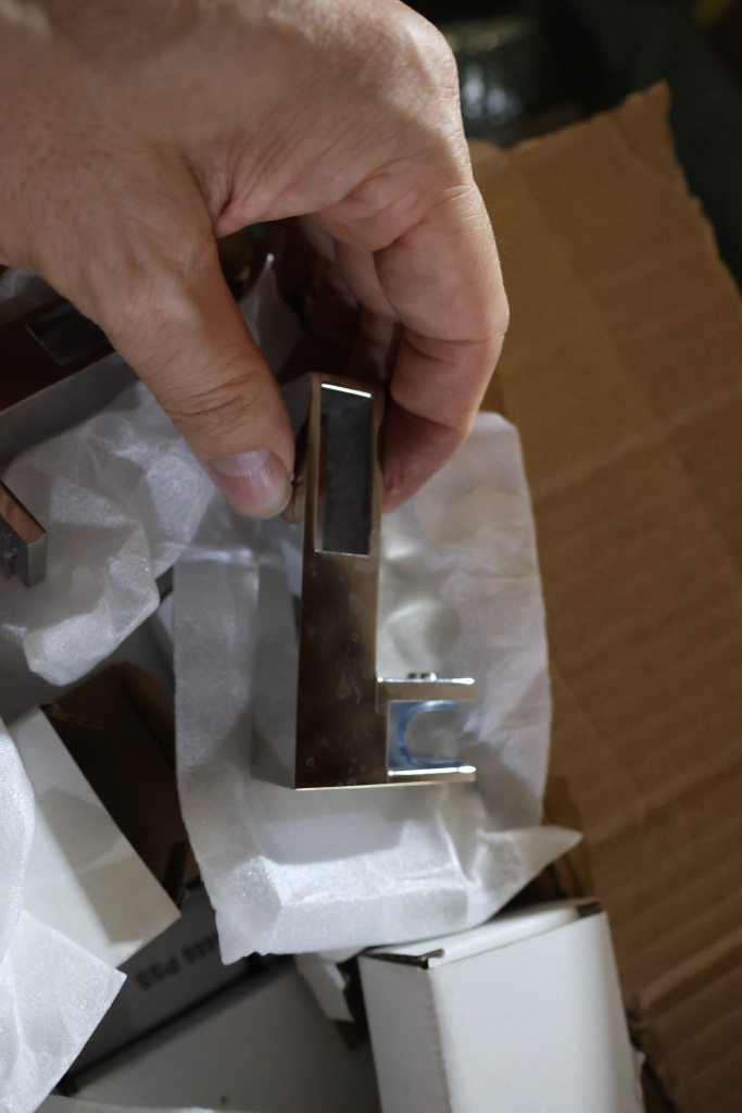 Коннектор труба-стекло, для трубы 30х10. Поверхность - полированная. Марка стали - AISI 304