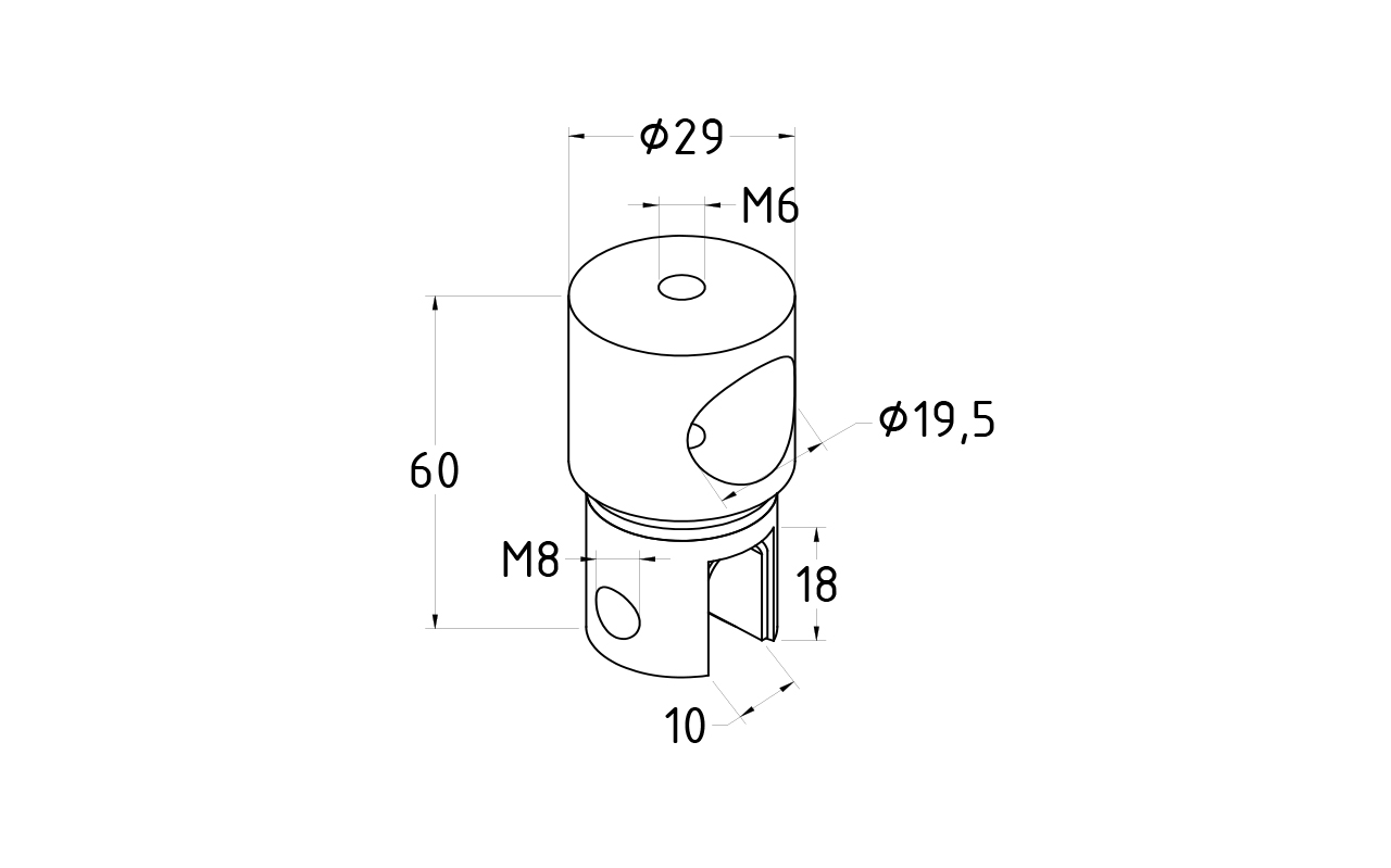 Крепежный элемент сквозной для трубы 19 мм, полированный, марка стали- 304