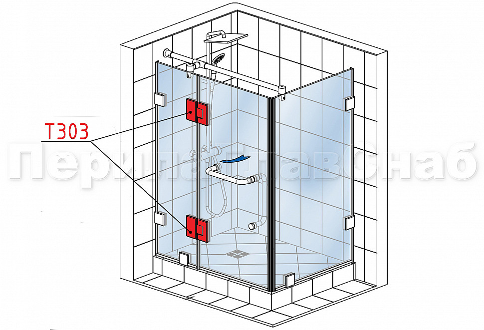 Комплект раздвижной системы для стеклянной душевой, нержавеющая сталь AISI 304, полированная t401 PSS купить в Краснодаре