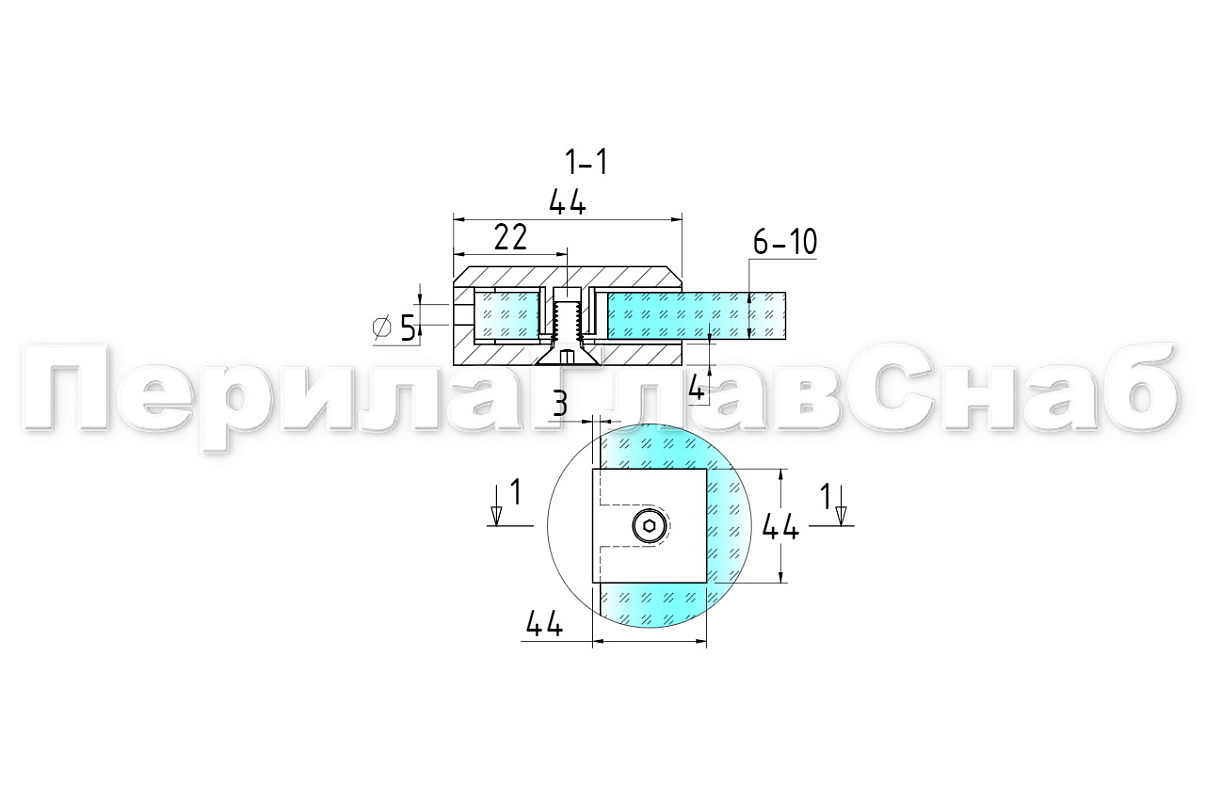 Коннектор для душевой кабины, стена-стекло, 45х45 мм. Материал - латунь-хром, поверхность - полированная