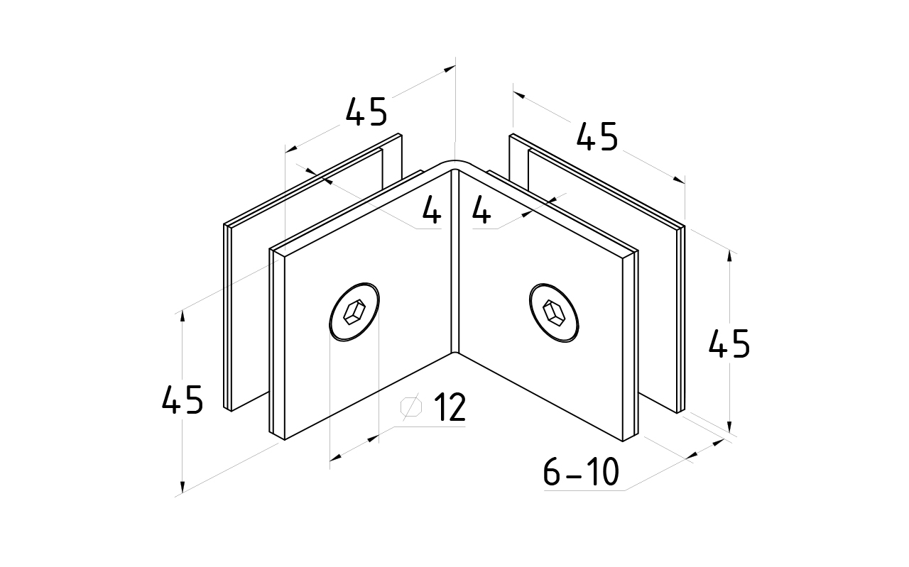 Коннектор для душевой кабины стекло-стекло 90°, 45х45, черный