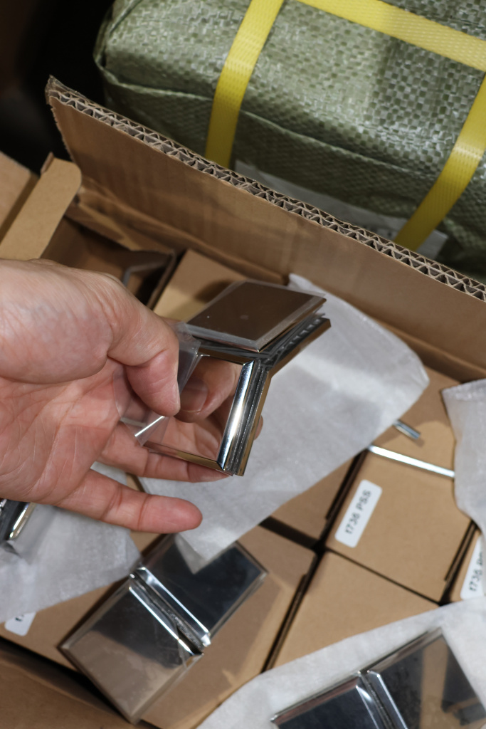 t726-2 SSS - коннектор для душевой кабины стекло-стекло 135° 45х45 мм. Деталь шлифованная, марка стали - AISI 304, имеет сглаженные углы. менее практичен для дизайнерских решений.