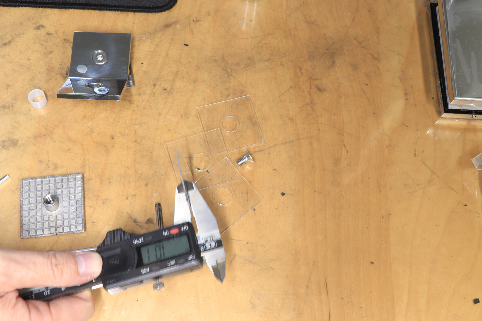 Фиксируется с помощью шестигранника, винтов. Отверстие в стекле нужно подготовить заранее (идут в комплекте, под стекло 8-10 мм)