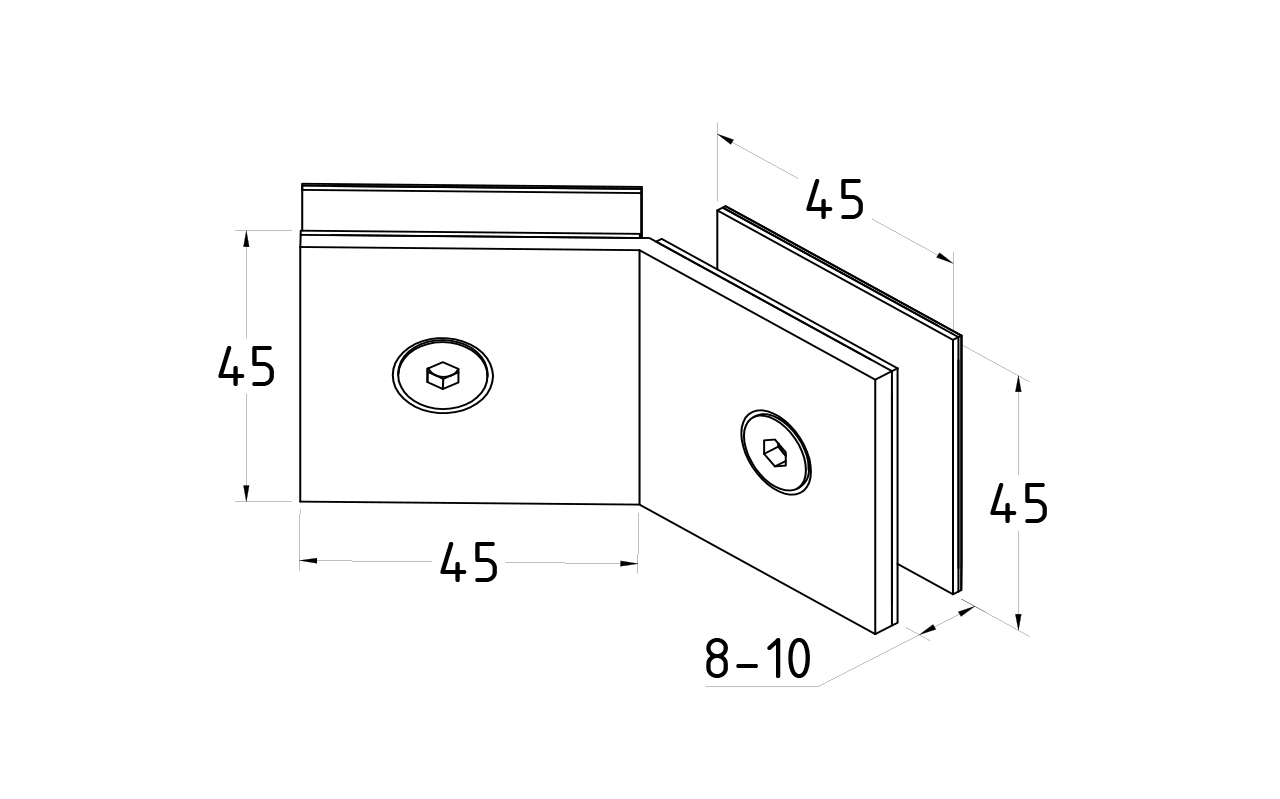 Крепление двух стёкол под стандартным углом 135°
