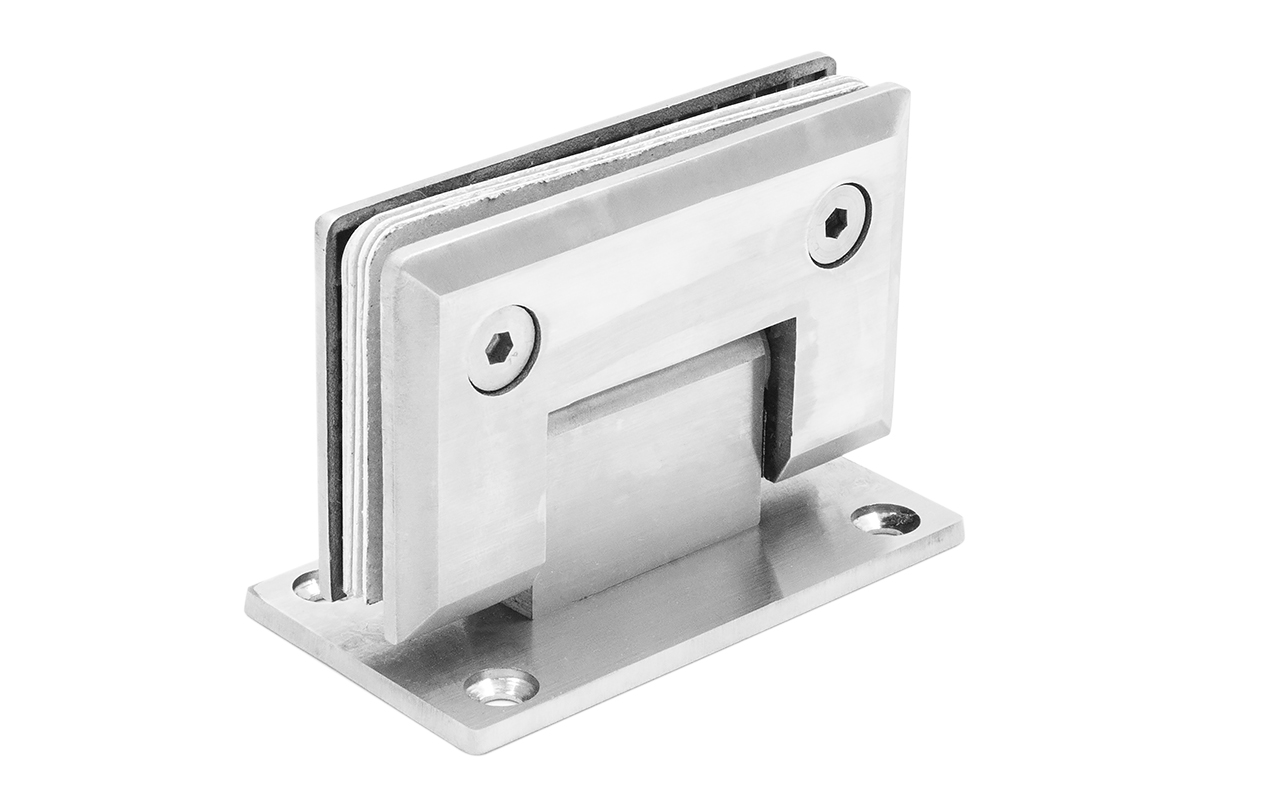 Петля из нержавеющей стали со шлифованной поверхностью из нержавеющей стали предназначена для стыковки между собой конструкционных элементов из стекла, толщина которых находится в диапазоне от 8 до 10 мм. Максимальный вес двери на 2 петли составляет 45 кг. В конструкции заложена система скрытого крепежа. Имеет функцию доводчика до закрытия от 25°. Максимальный угол разведения стыковочных элементов в плане составляет 90°.