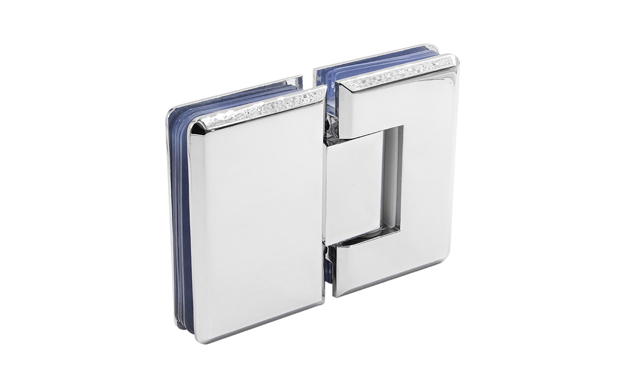 Петля из латуни с полированной поверхностью из хрома предназначена для стыковки между собой конструкционных элементов из стекла, толщина которых находится в диапазоне от 8 до 10 мм. Максимальный вес двери на 2 петли составляет 45 кг. В конструкции заложена система скрытого крепежа. Имеет функцию доводчика до закрытия от 25°. Максимальный угол разведения стыковочных элементов в плане составляет 180°.