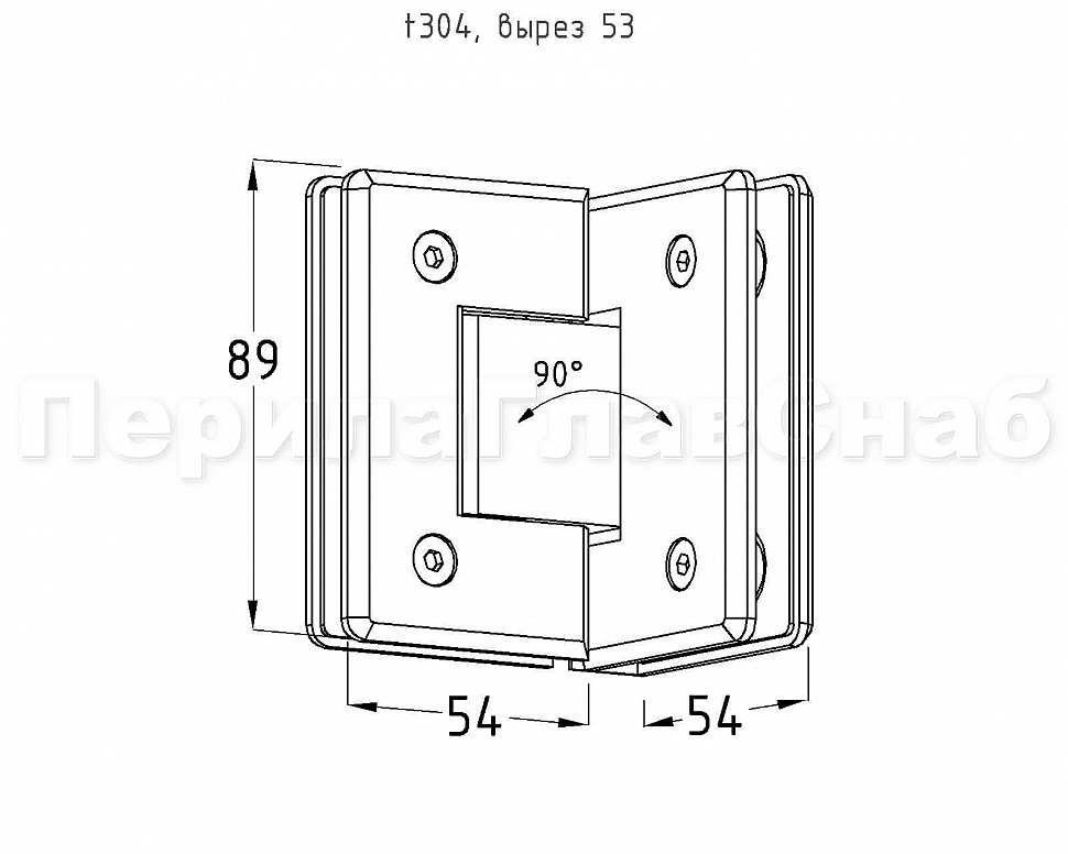 Петля для душевой кабины стекло-стекло 90°, 90*55, материал - нержавеющая сталь AISI 304, шлифованная поверхность