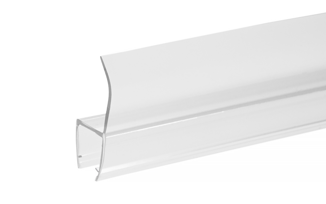 Уплотнитель имеет исполнение прозрачной поверхности, выполнен из материала ПВХ. Имеет Ч-образный профиль. Толщина одного типоразмера составляет 1.5 мм, длина – 2200 мм. За счет своих свойств (стойкость к щелочам, минеральным маслам и многим кислотам) прекрасно подходит для крепления стеклянного листа по всему периметру. Позволяет соединять стеклянные панели между собой. Он применим в сочетании со стеклом толщиной до 8 мм и углом в плане до 1800