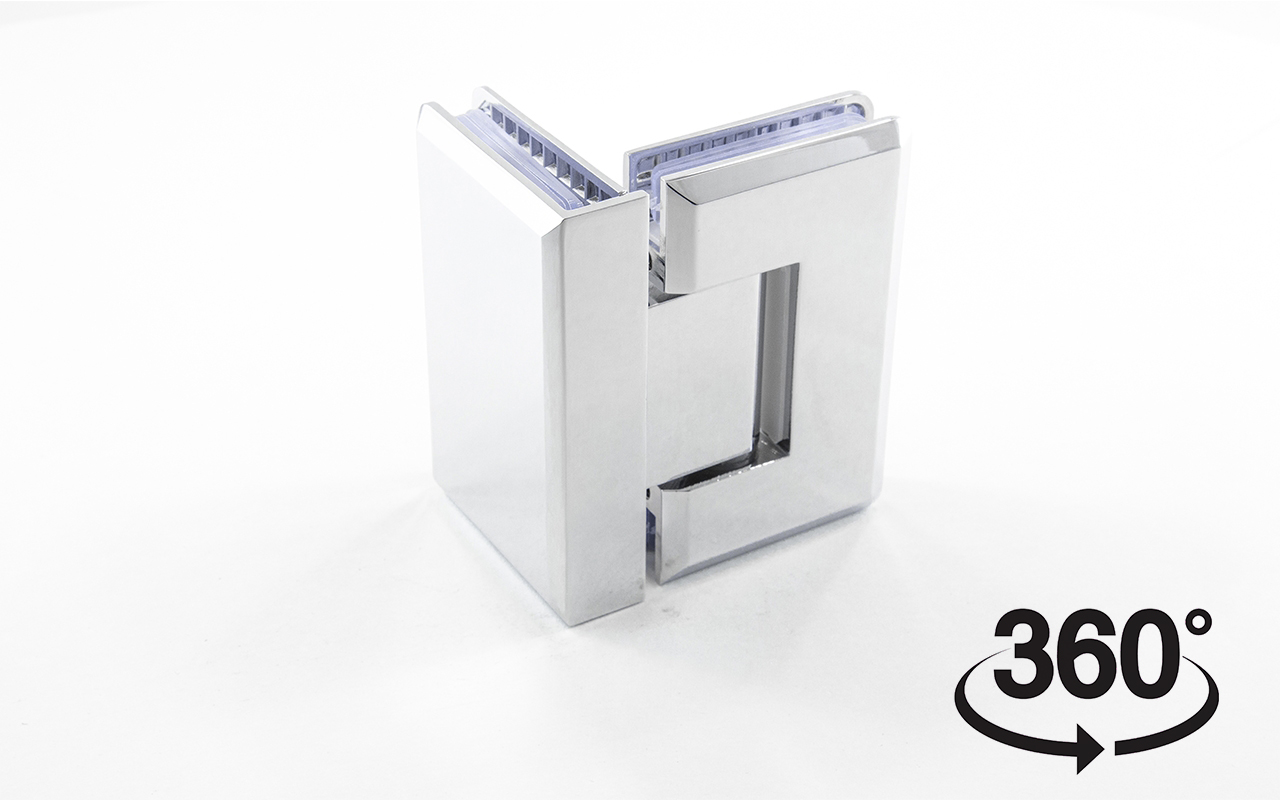 Функция самозакрывание, поворот в обе стороны. Петля стекло-стекло крепится с обеих сторон на стеклянные поверхности, плотно прижимаясь к ним своими металлическими зажимами.