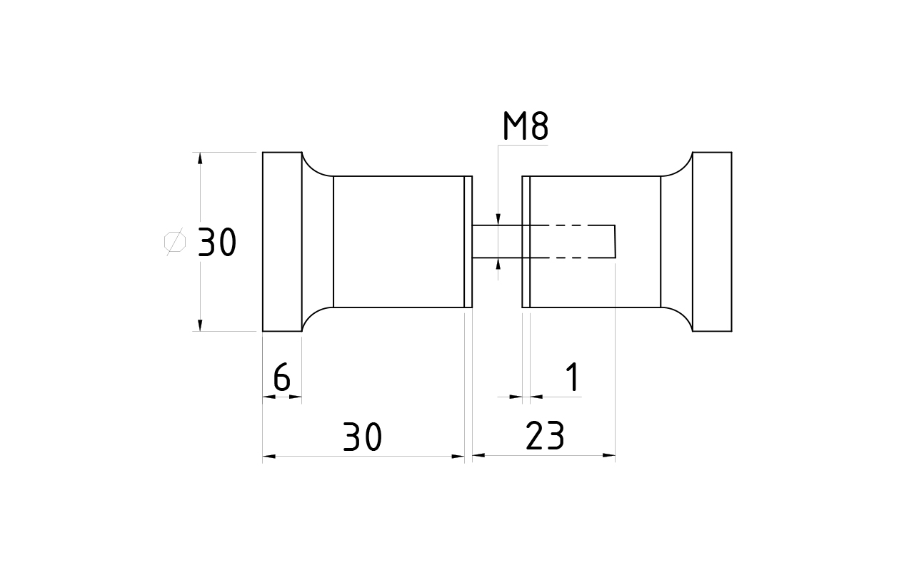 Дверная ручка «кноб», для душа алюминий-хром, полированная, самосбор. Диаметр отверстия в стекле - 12 мм