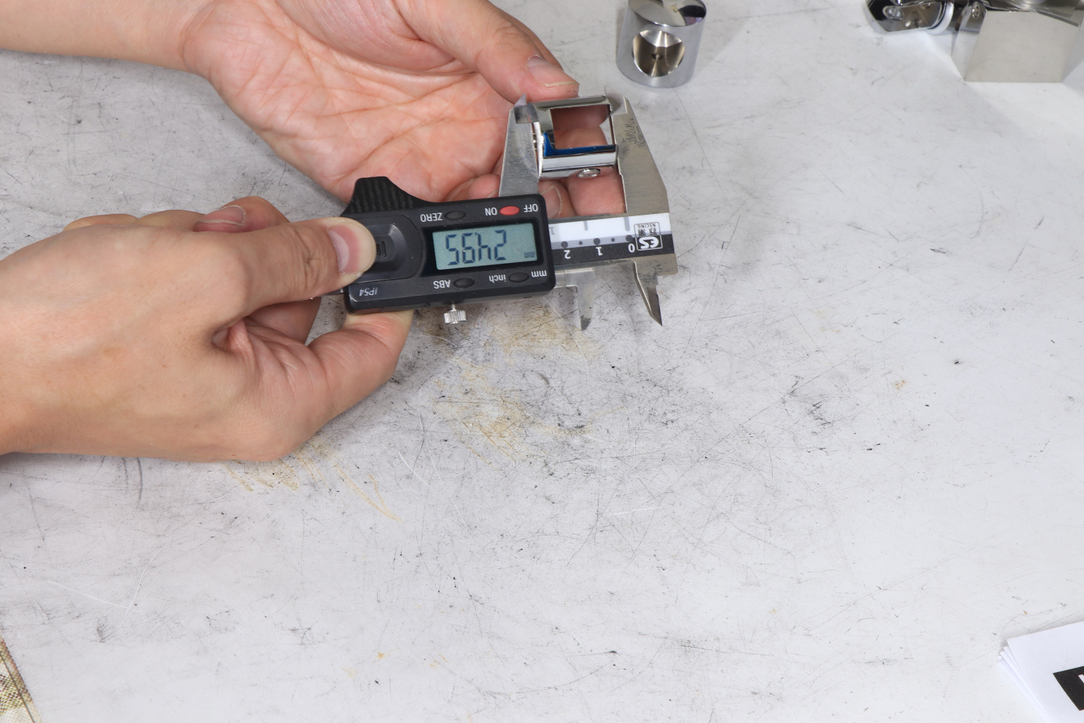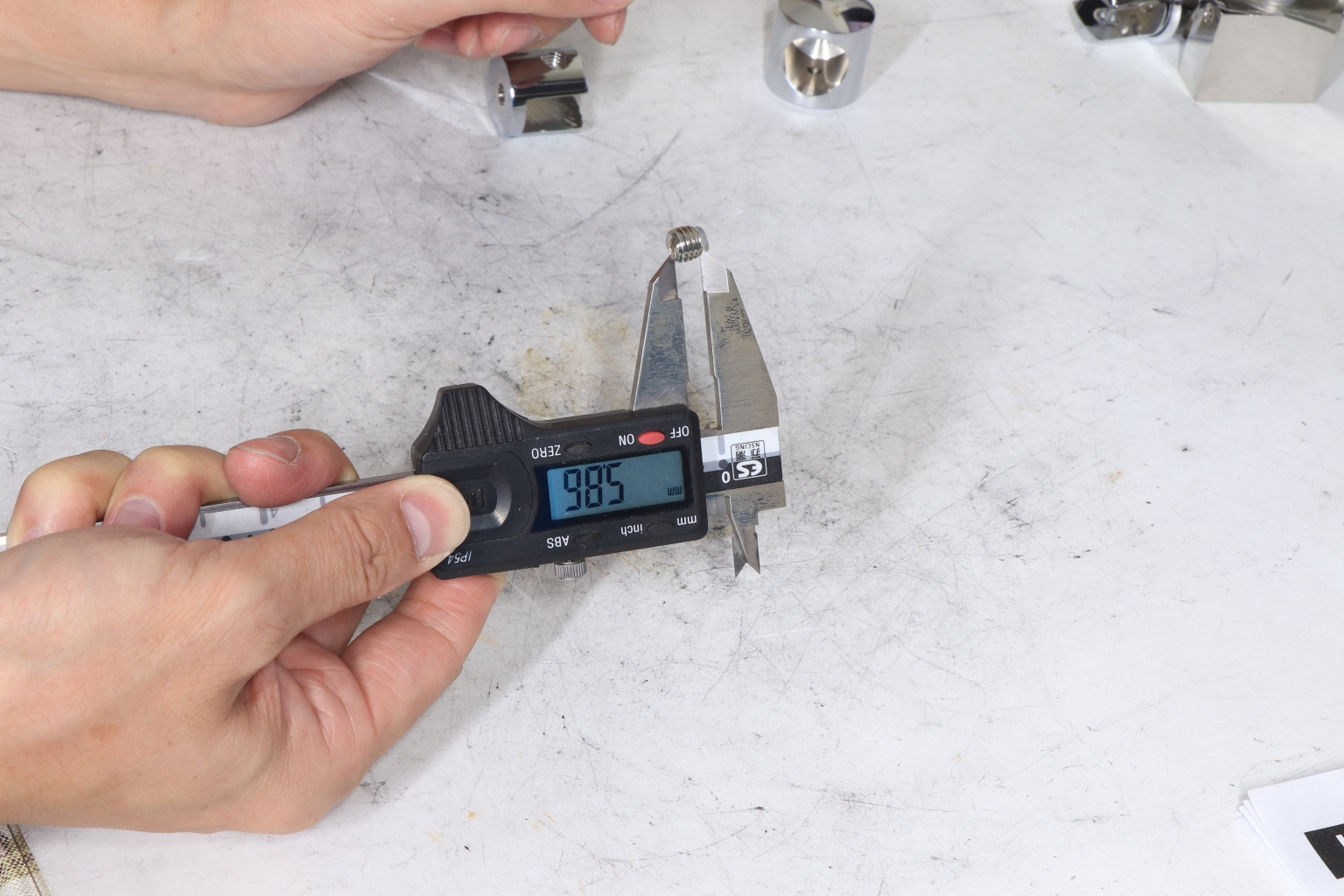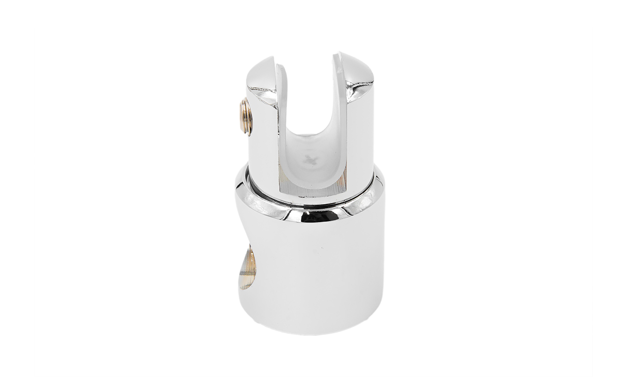 Крепежный элемент труба-стекло. Основная задача соединить окончание трека с кромкой стекла. Материал: латунь-хром, поверхность - полированная