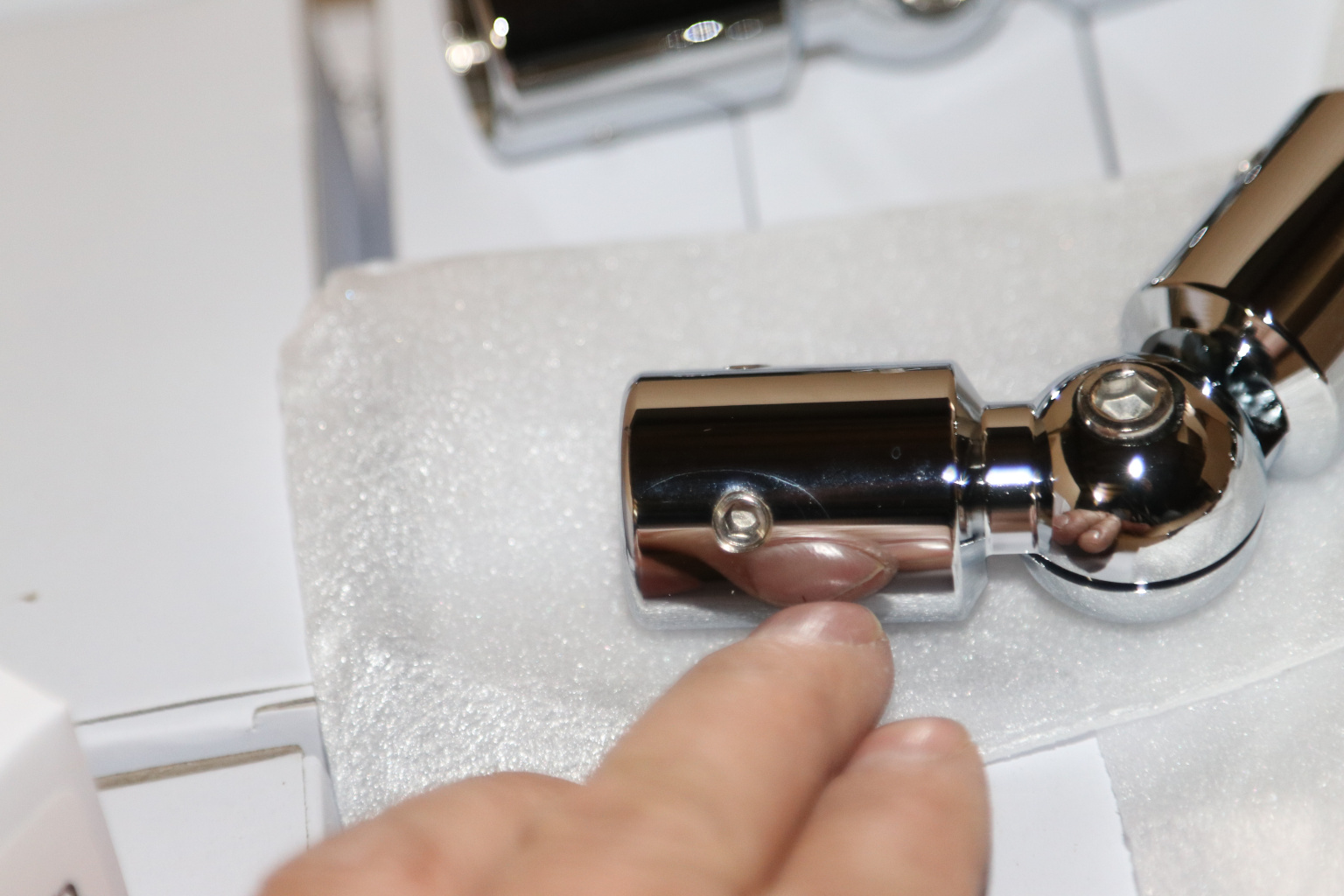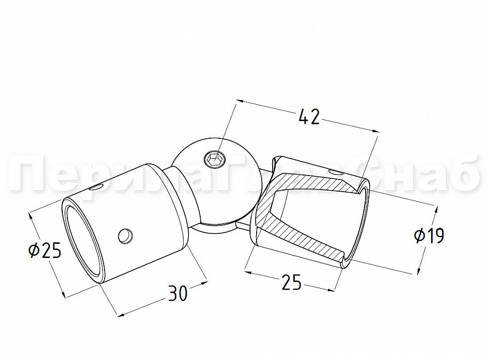 Cоединитель шарнирный, регулируется под произвольным углом. Предназначен для соединений штанги т900-03 т900-06. Материал - цинк-хром, поверхность - полированная
