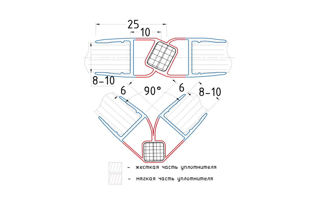 Комплект уплотнителей для стекла 8 мм (2 шт.), прозрачный, стекло-стекло, с магнитом 90°/180°, 2200 мм