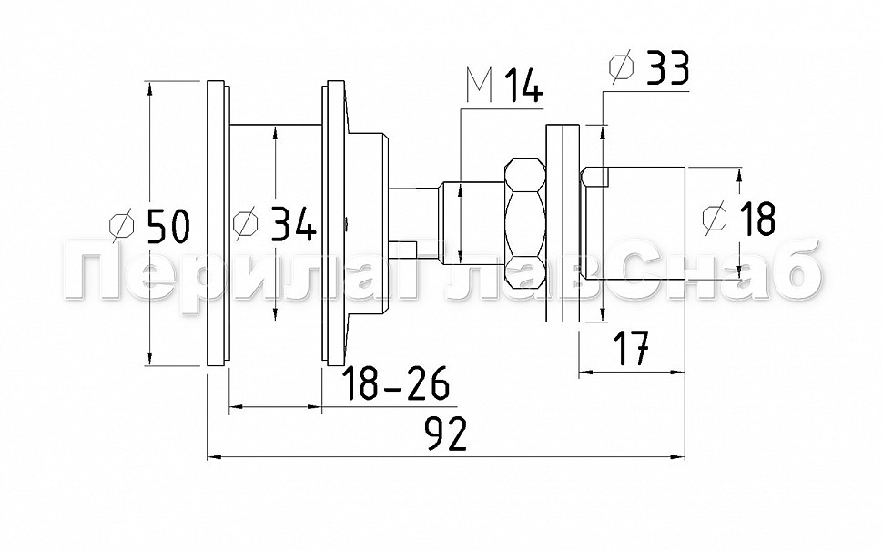 под стекло от 10 до 26 мм (отверстие 38 мм)шаг резьбы шпильки М14 рутеля - 1,5мм