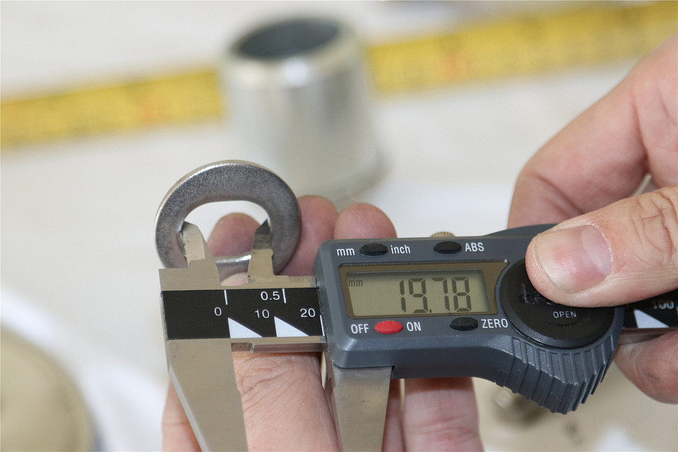 Рутель для вантового крепления козырьков, регулируемый, разборный, под стекло от 10 до 26 мм, полированный, диаметр внешнего кольца 50, шпилька М14 (aisi 304)