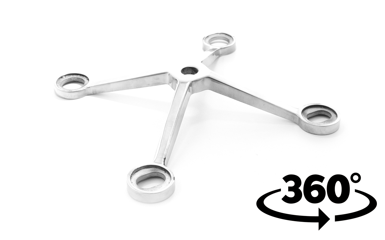 Спайдер – крепеж для вертикального остекления, фасадного остекления, который крепко соединяет между собой стеклянные панели и крепит стекло к несущему металлическому каркасу. Металлические крестовины «паук» изготавливаются из высокопрочной легированной стали, благодаря которой изделие сохраняет свои физические и механические свойства при воздействии внешних разнообразных факторов. Этот вид крепежа используется для безрамного остекления, что позволяет сделать остекление не зависящие от бокового крепежа и сохранит внешний вид вашего фасада. Так же Спайдер идеален в случае необходимости ремонта, он позволяет легко демонтировать стекло и заменить его с минимальными трудозатратами.