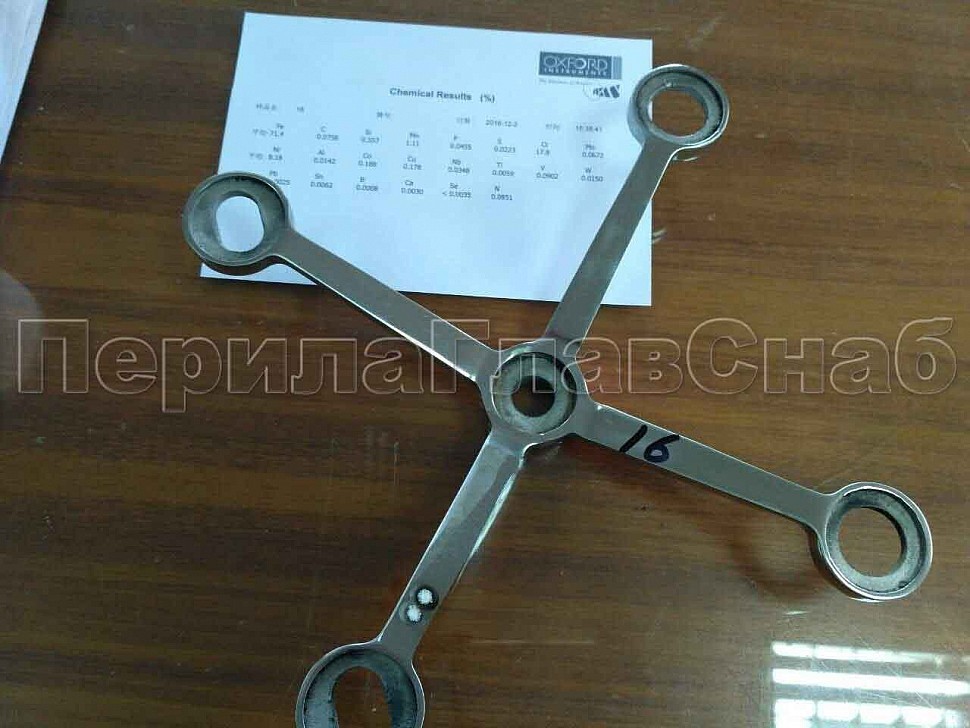 Спайдер-200 мм X-образный 4х26х38, 1х18х36/40 мм, нагрузки: 1кН, 2кН, марка стали- AISI 304