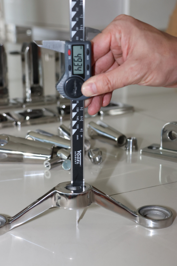 При установке спайдерной системы для крепления стекла используют рутели, которые после фиксации стекла крепятся к спайдерам. При изготовлении спайдеров предъявляют высокие требования к материалу, благодаря чему спайдер отвечает высокой механической прочности и антикоррозийной стойкости. Конструкция изготовлена так, что нагрузка распределяется равномерно, а запас прочности гарантирует надежность и безопасность всей конструкции. Благодаря использованию шарнирного рутеля k274, k634, k364в спайдерной системе нивелируется объемное расширение стекла при изменении температуры.