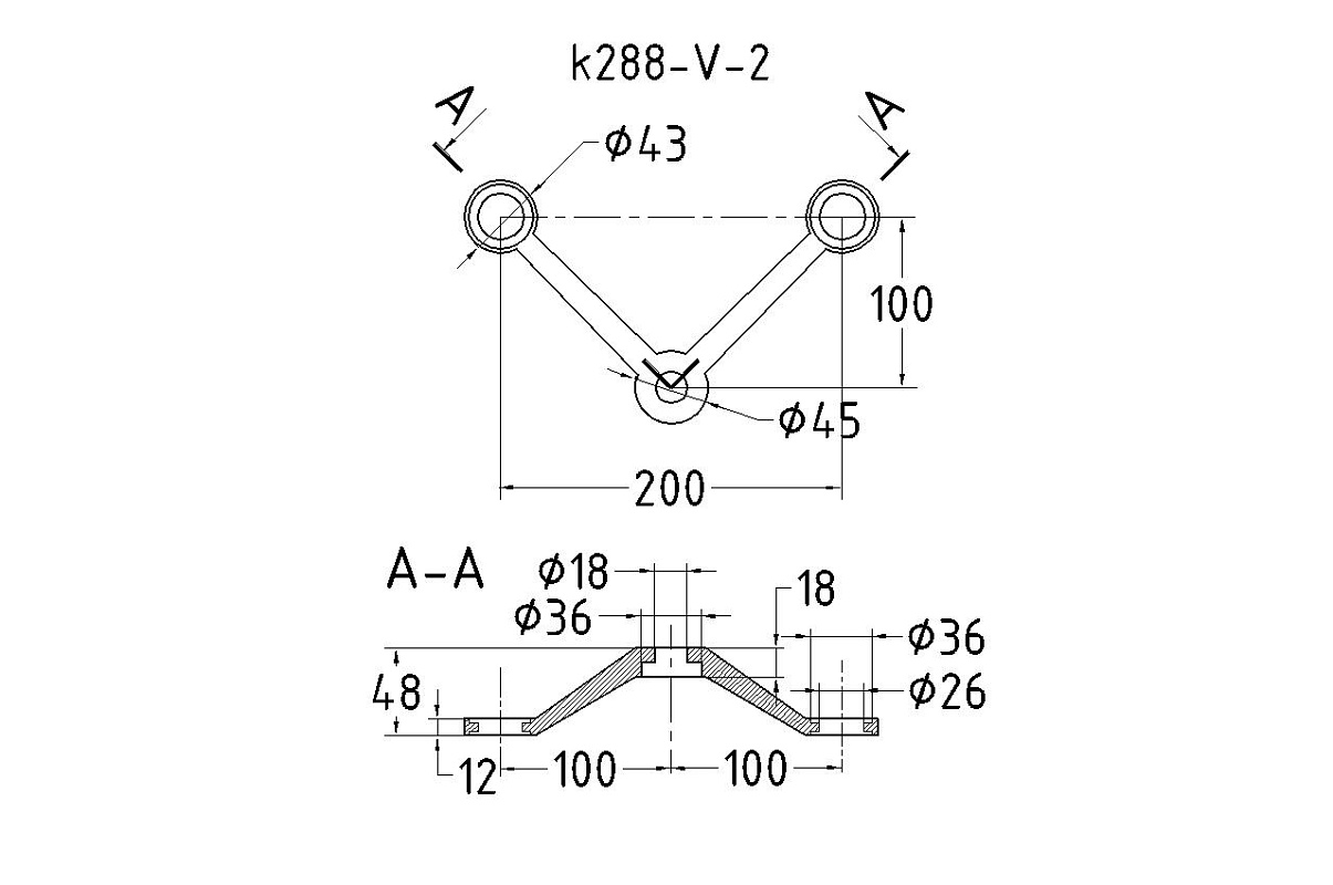 Cпайдер, литой, полированный V-200мм, 2х26х38, 1х18х36/40мм, нагрузки: 1кН, 2кН. Марка стали - AISI 304