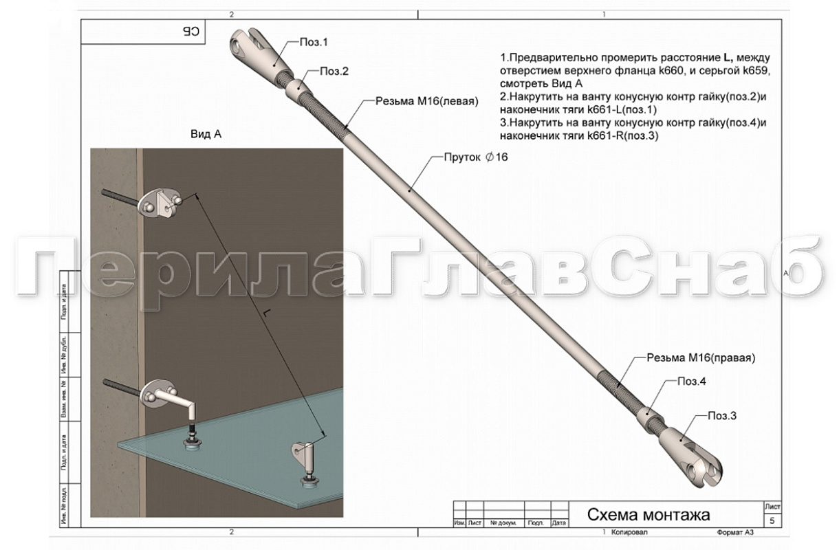 k668-16-L2 Вант (тяга) для козырька М16, 1000-2000 мм (AISI 304)