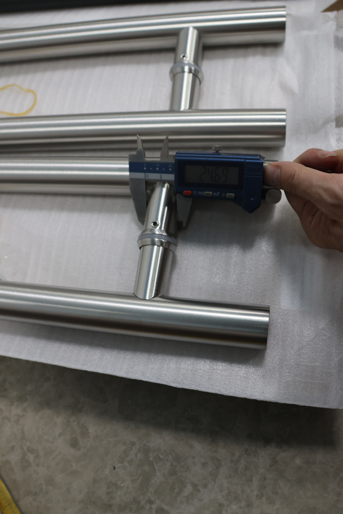 Ручка для стеклянной двери рейлинг двухсторонняя для стекла 8-12 мм, 32х425х600 мм, шлифованная, марка стали- AISI 304