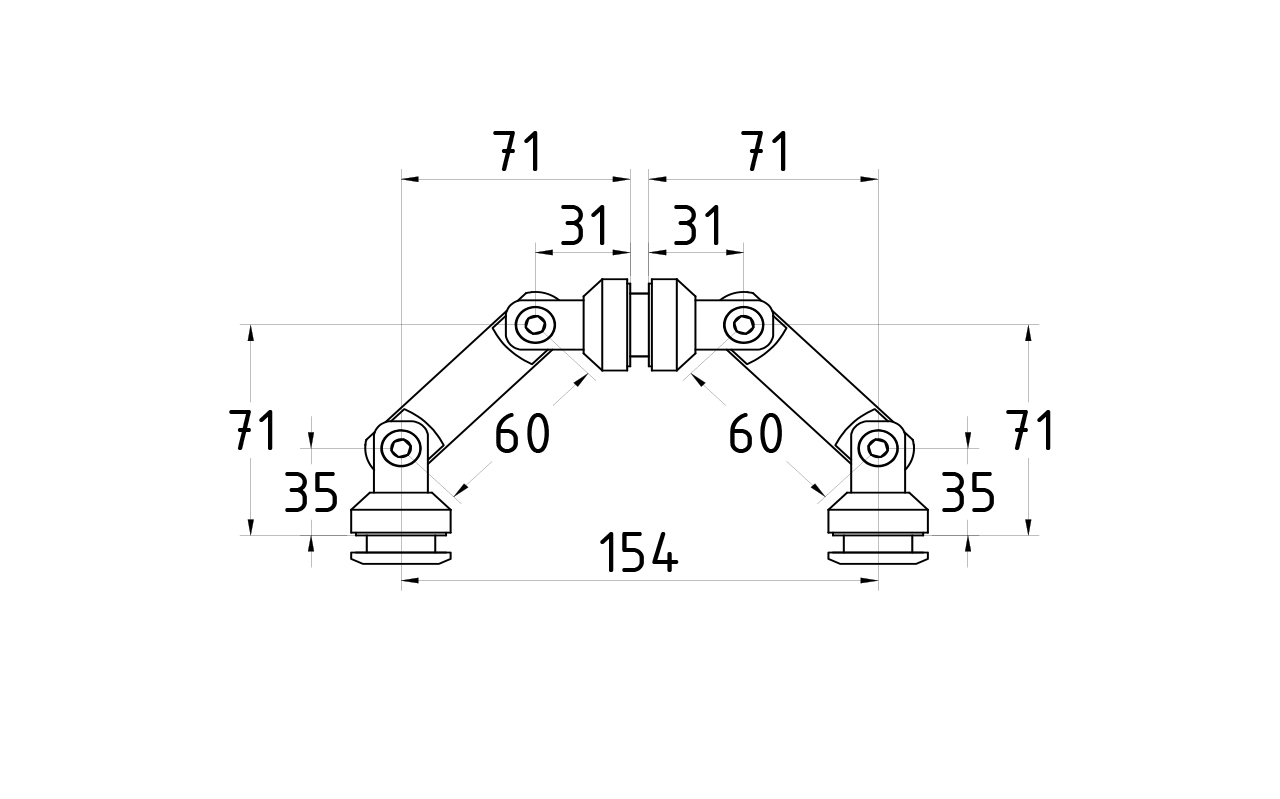 1. t008 SSS держатель двойной штанги, AISI 304 шлиф – 1 шт.