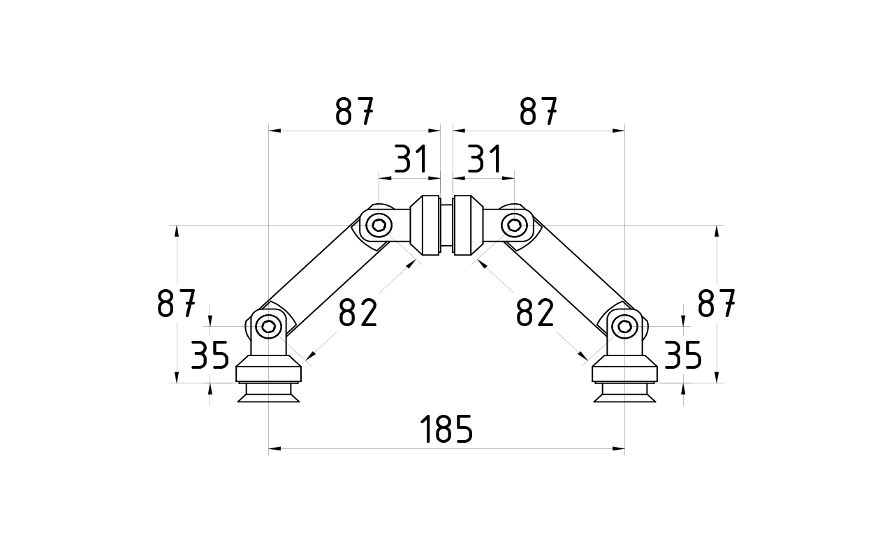 Крепление на три стекла, штанга 82 мм, под зенковку