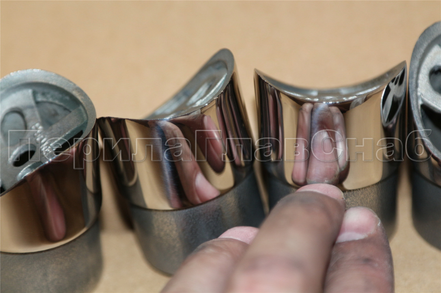 Наконечник седловина косая 30° на стойку Ø38.1 мм, под поручень Ø38.1 мм, литая, полированная, AISI 304, k045-2