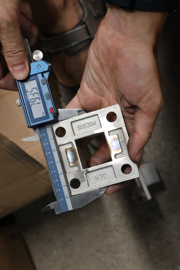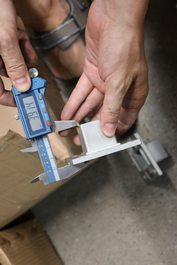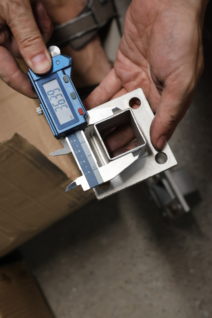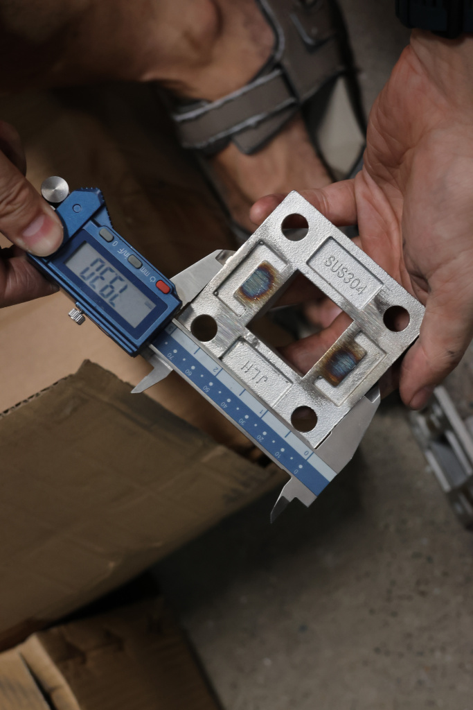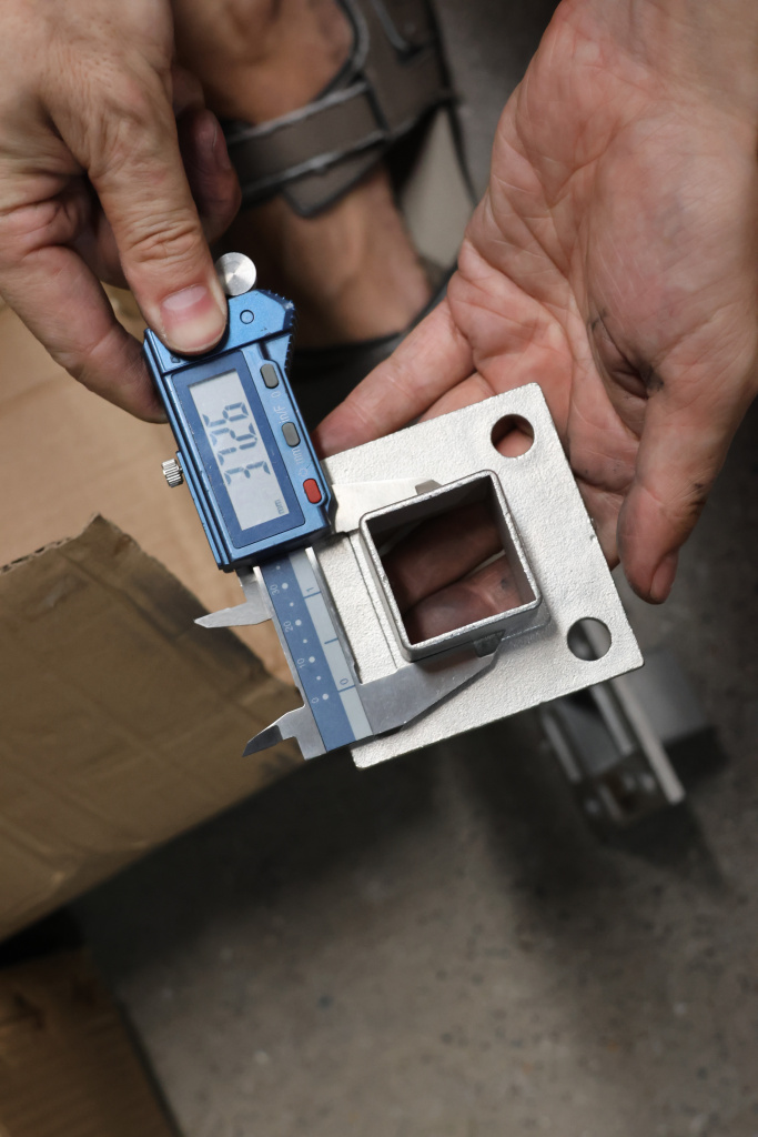 Фланец для трубы 40х40 мм с четырьмя отверстиями. Деталь литая, шлифованная, закладная под стойку. Марка стали - AISI 304