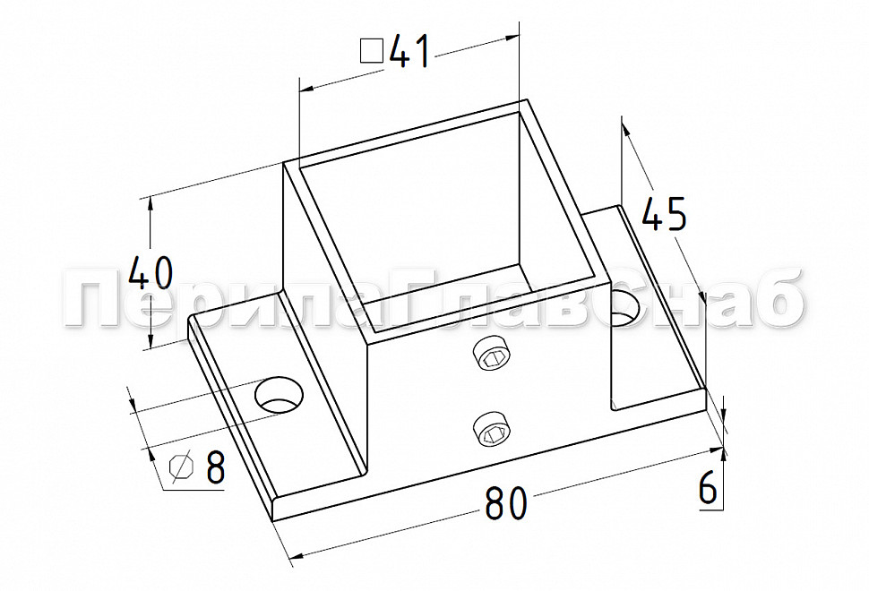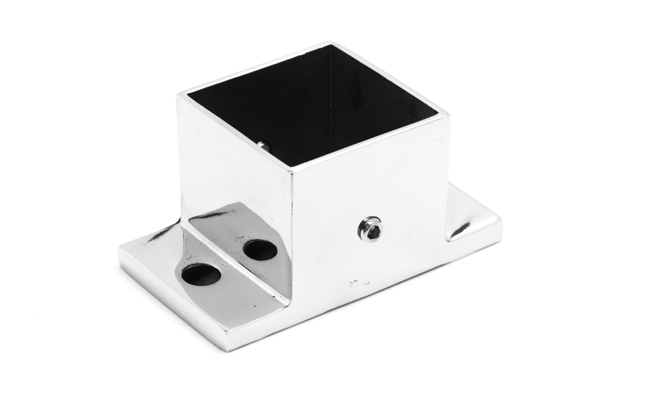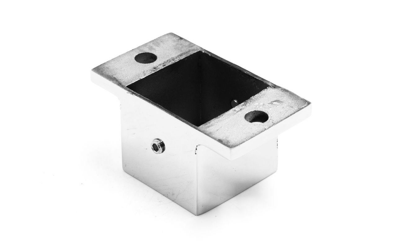 Фланец для трубы 40х40. Отверстия Ø8 мм. Деталь укороченная, полированная, литая. Марка стали - AISI 304