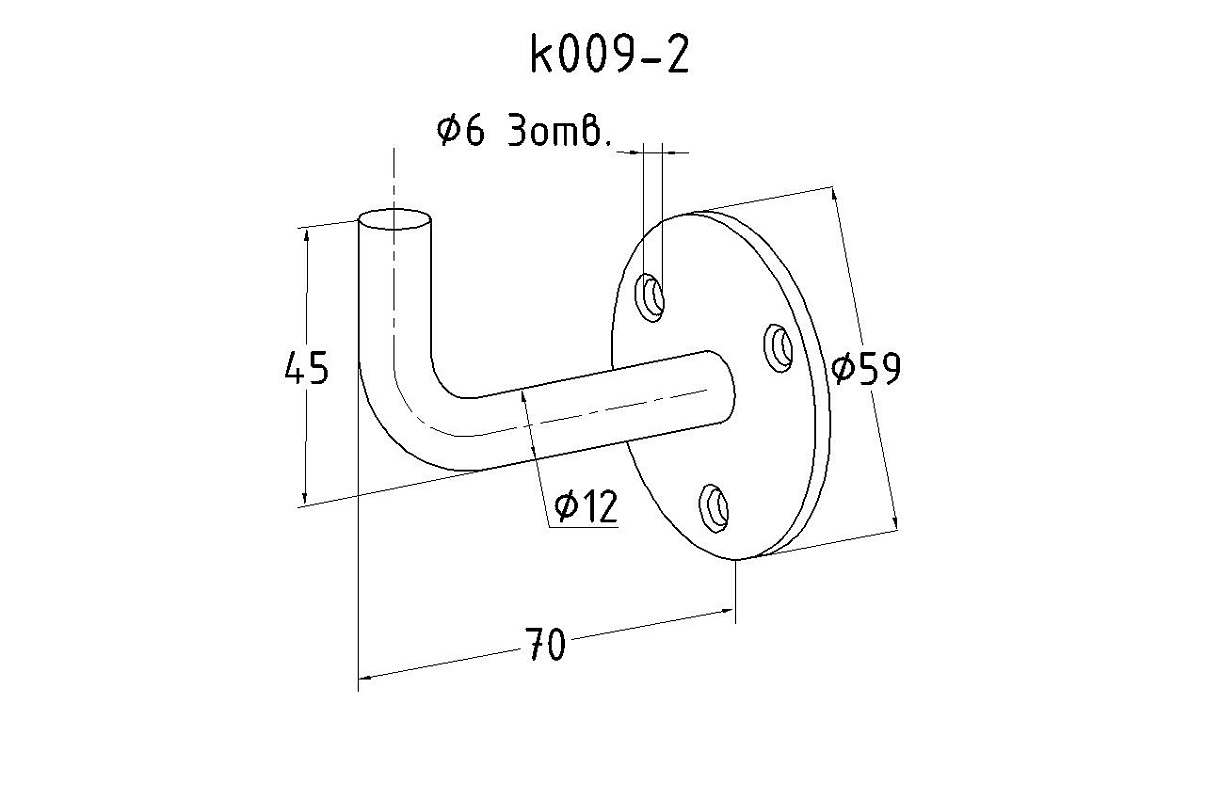Устанавливается в стену на три самореза (анкера) Ø3 мм. Сам поручень крепится при помощи сварки.