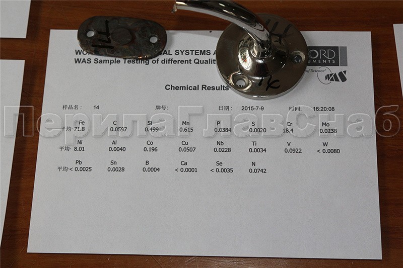 Пристенок литой, под поручень диаметром - 50.8 мм, отверстия в фланце для самореза с потайной головкой. Деталь полированная, литая. Марка стали - AISI 304.