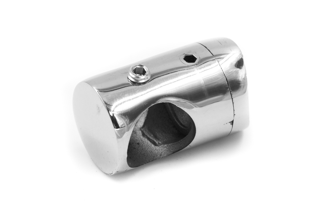 Предназначен для крепления нержавеющего ригеля Ø16 (тетивы, струны) к стойке диаметром 38.1 мм ограждения с ригелями.