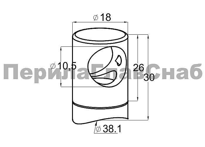 Предназначен для крепления нержавеющего ригеля Ø10 (тетивы, струны) к стойке диаметром 38.1 мм ограждения с ригелями.
