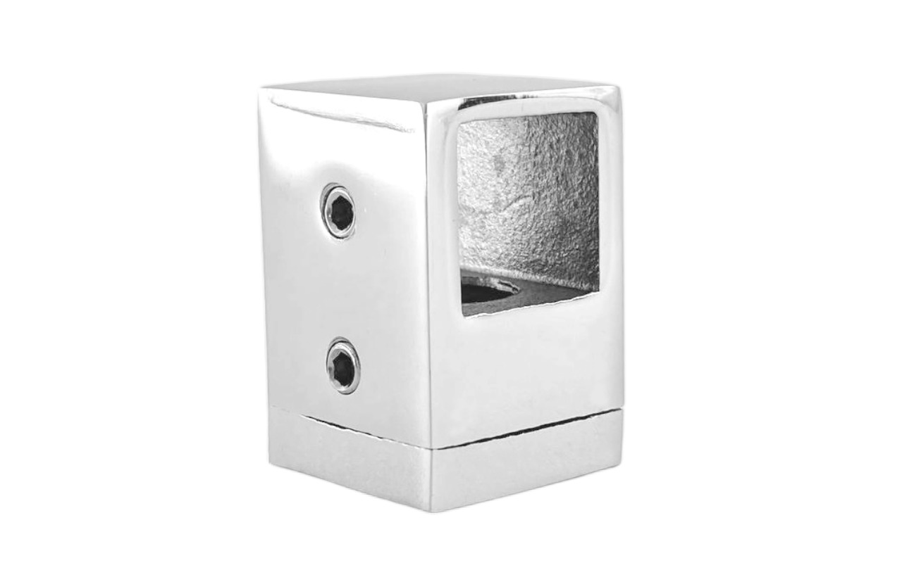 Ригеледержатель под квадратный ригель 15х15 мм, полированный, (AISI 304) k266-3