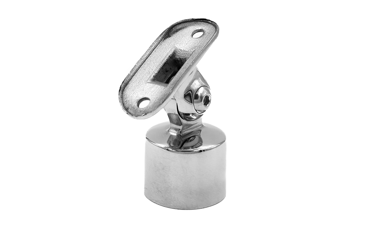 Предназначен для соединения поручня Ø38.1 мм со стойкой Ø25.4 мм. Деталь с регулируемым ложементом, что позволяет монтировать её как и на горизонтальных площадках, так на лестничных маршах.