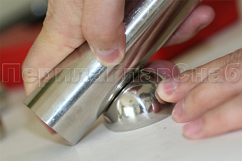 Наконечник штампованный (СПС) косой 30° на трубу диаметром 38.1 мм, для поручня диаметром 38.1 мм, полированный, нержавеющий. Марка стали-  AISI 304