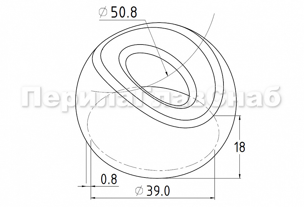 Наконечник штампованный (СПС) косой 30° на трубу Ø38.1 мм, для поручня Ø50.8 мм, полированный, нержавеющий, AISI 304, 600Grit, k016-3 купить в Краснодаре