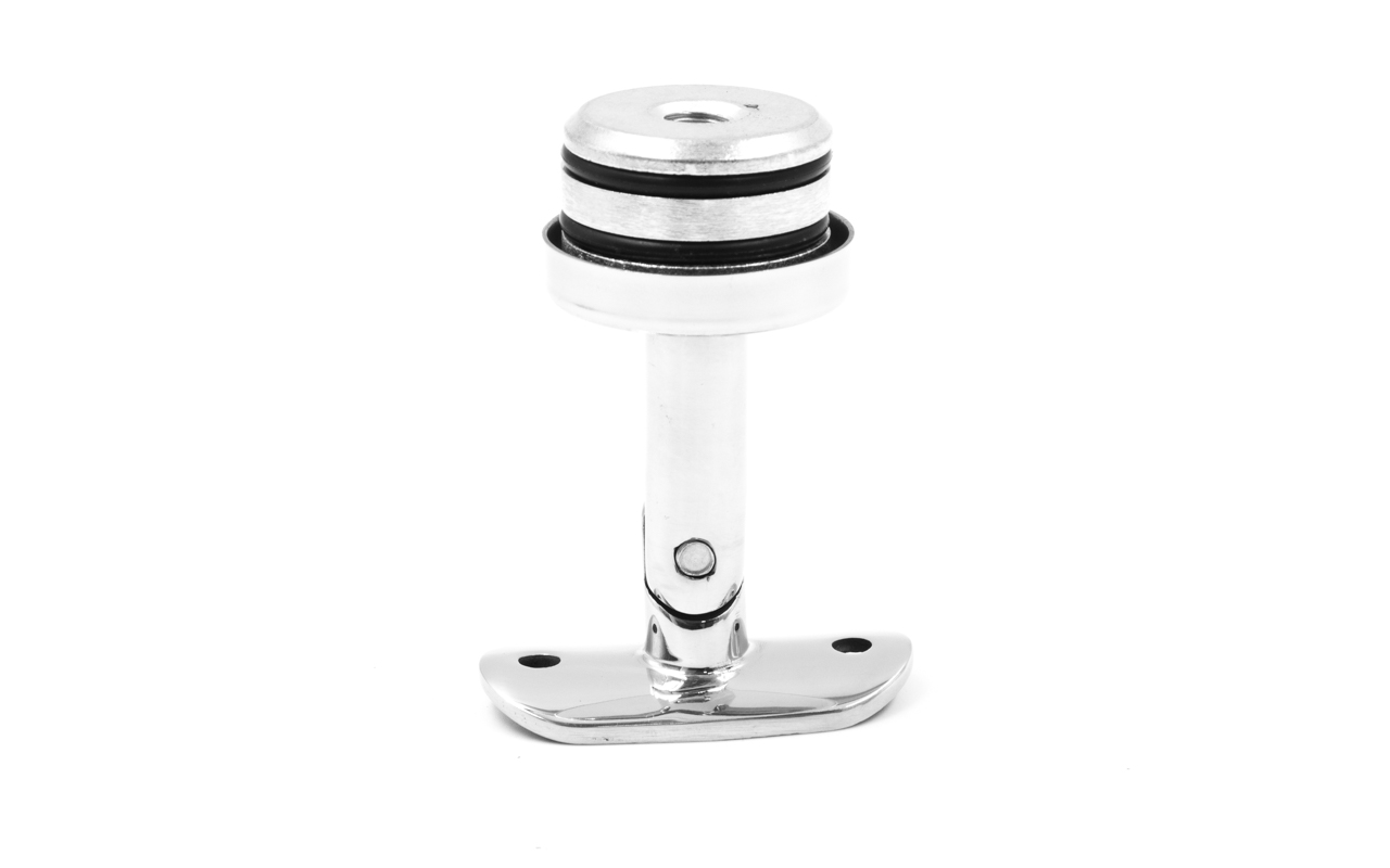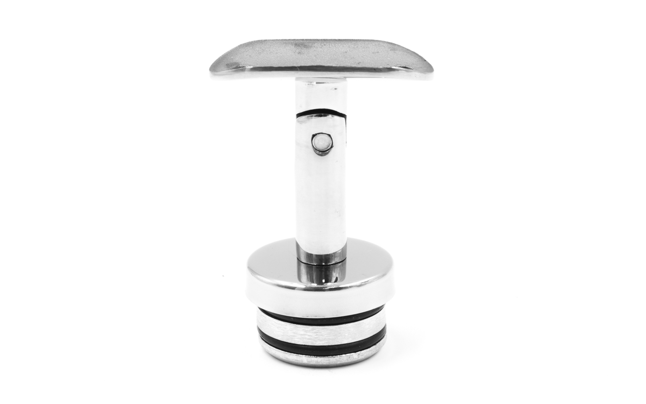 Наконечник палец с алюминиевой системой фиксации на стойке Ø38.1х1.5 мм, регулируемым ложементом под поручень Ø50.8 мм, полированный, литой, нержавеющий (AISI 304) k204