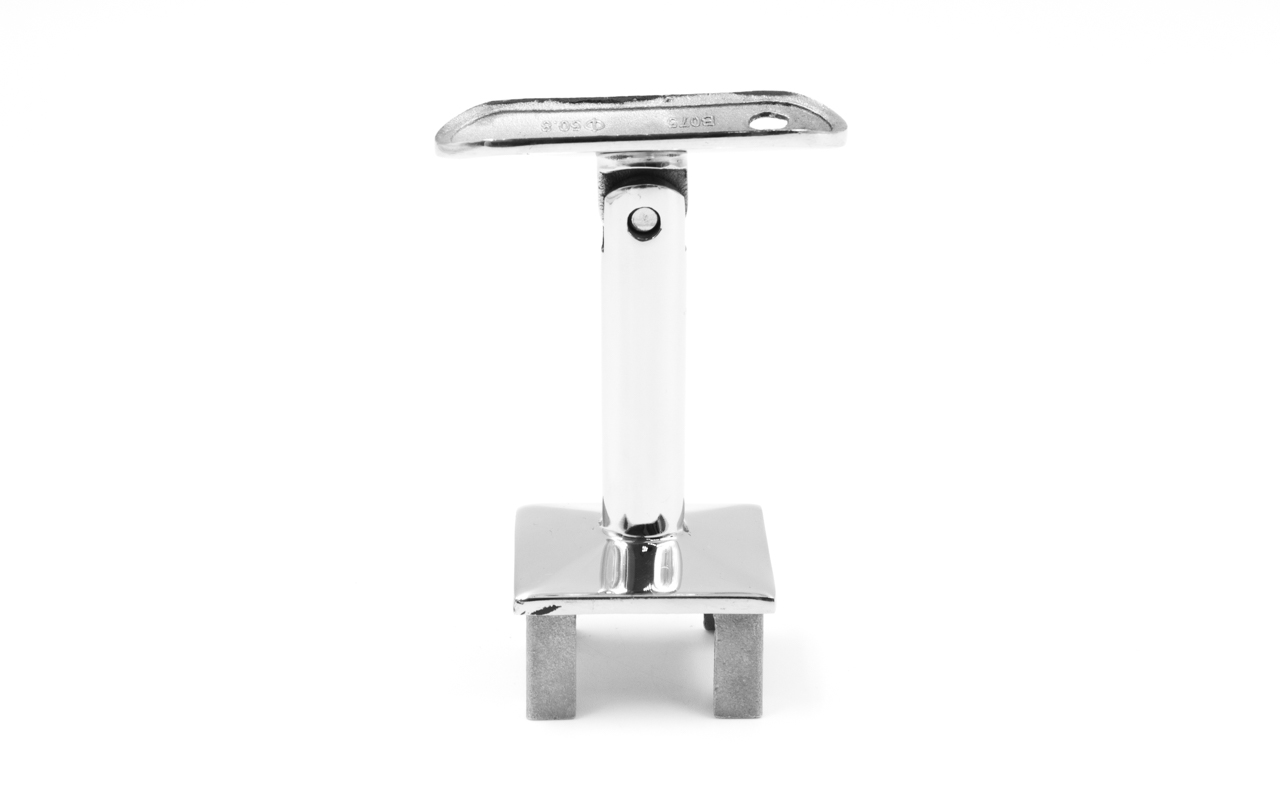 Наконечник палец на стойку из профильной трубы 40х40 мм, с регулируемым ложементом под поручень Ø50.8 мм, полированный, литой, облегченный нержавеющий AISI 304 k239-3
