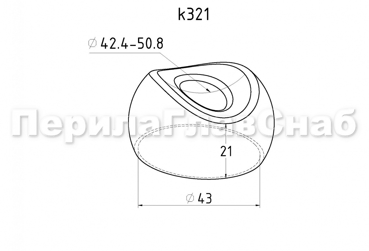 Наконечник штампованный (СПС) косой 30° на трубу Ø42.4 мм, для поручня Ø50.8 мм, полированный, нержавеющий, AISI 304, k322