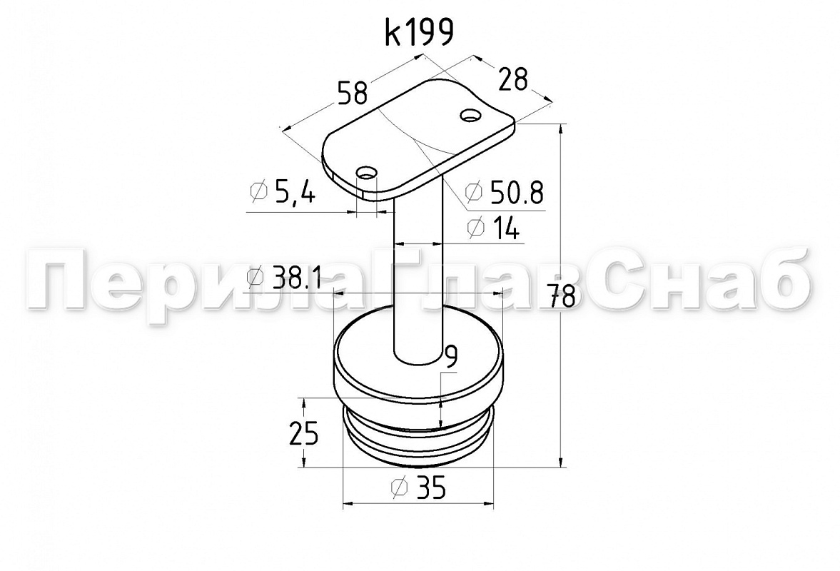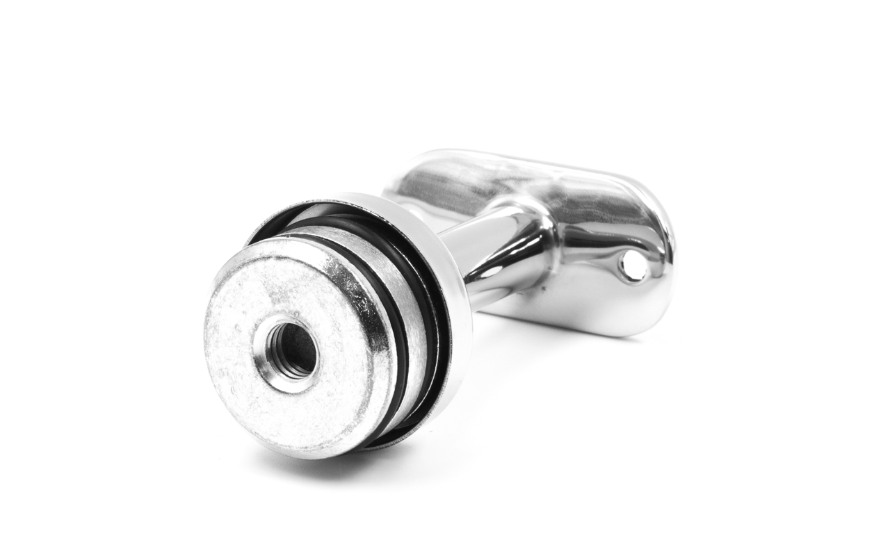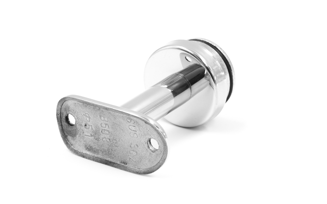 Наконечник палец с алюминиевой системой фиксации на стойке Ø38.1х1.5 мм, с не регулируемым ложементом 90° под поручень Ø50.8 мм, полированный, нержавеющий (AISI 304) k199