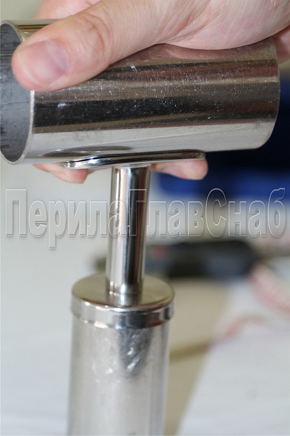 Отличная позиция под самосбор! Не используется на лестничных маршах, так как ложемент нерегулируемый. Устанавливается на стойку Ø38.1 мм (k819, k849) с помощью сварки или клея (Ф-1105, Ф-1106, Ф1107). Особенность наконечника в том, что он надевается поверх трубы, тем самым закрывая все неровности распиловки.