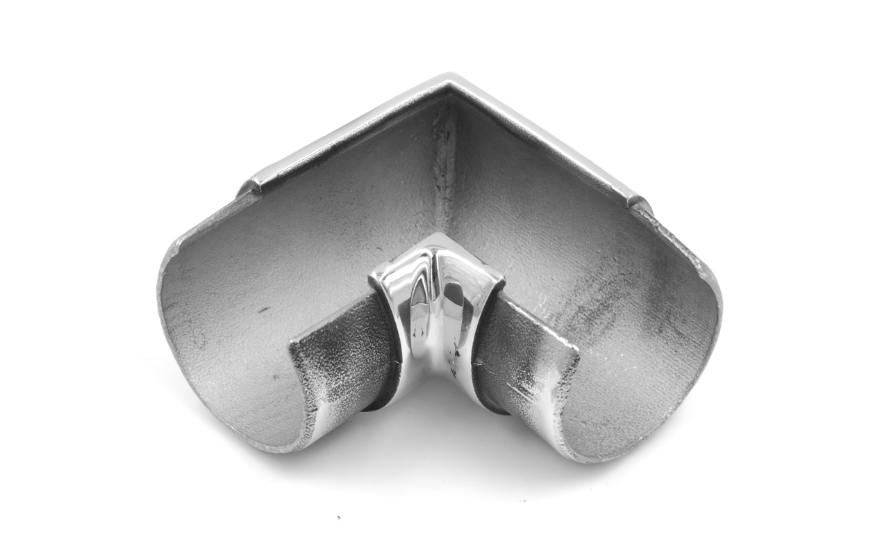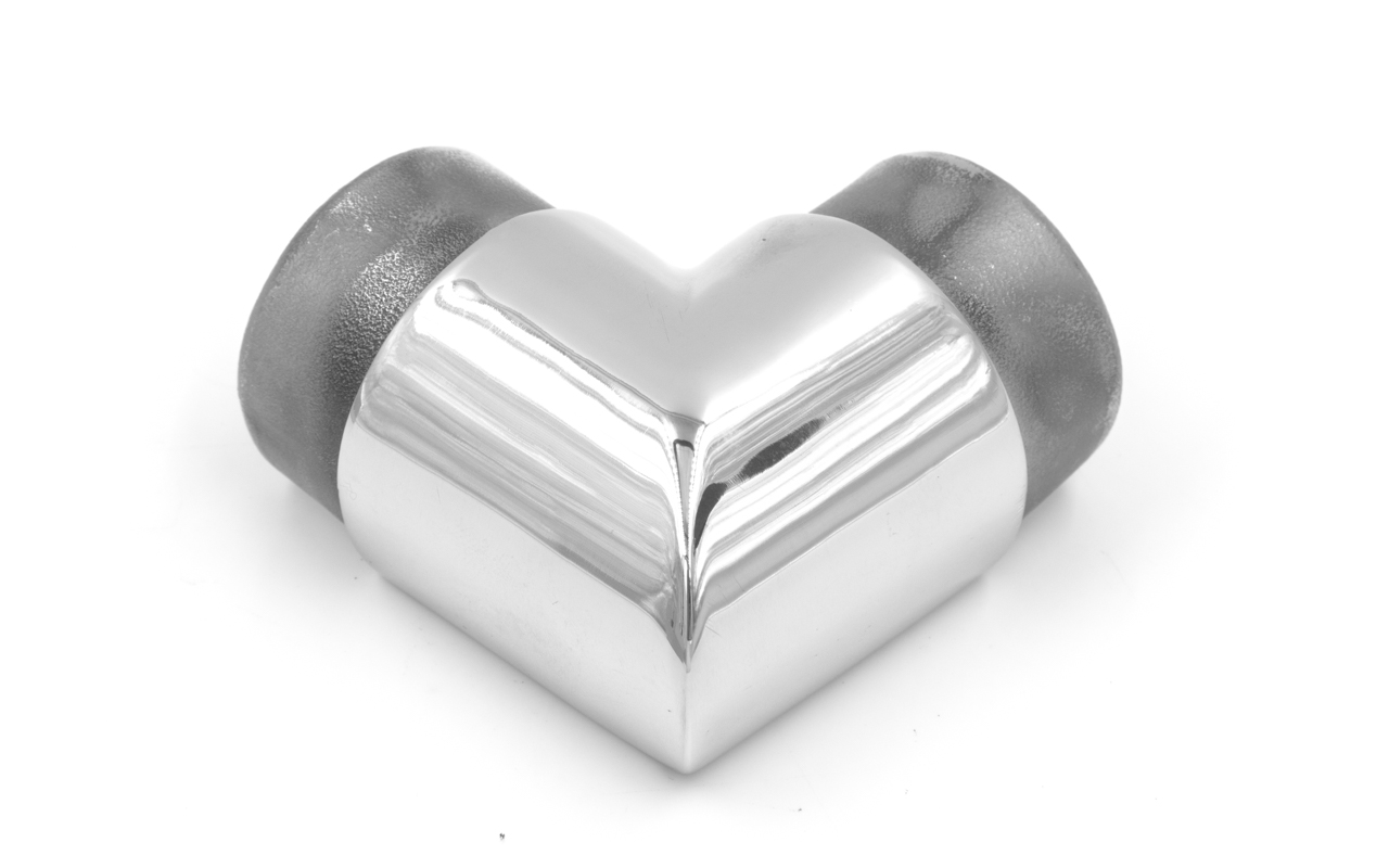 Фитинг предназначен для поворота поручня самосборных ограждений с несущим стеклом под углом 90 градусов в горизонтальной плоскости.