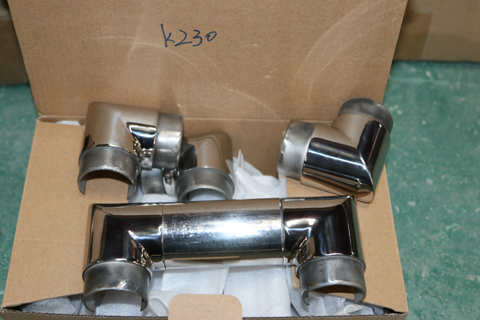 k229 - соединитель для трубы Ø42.4 мм с пазом 24х24 мм под стекло;