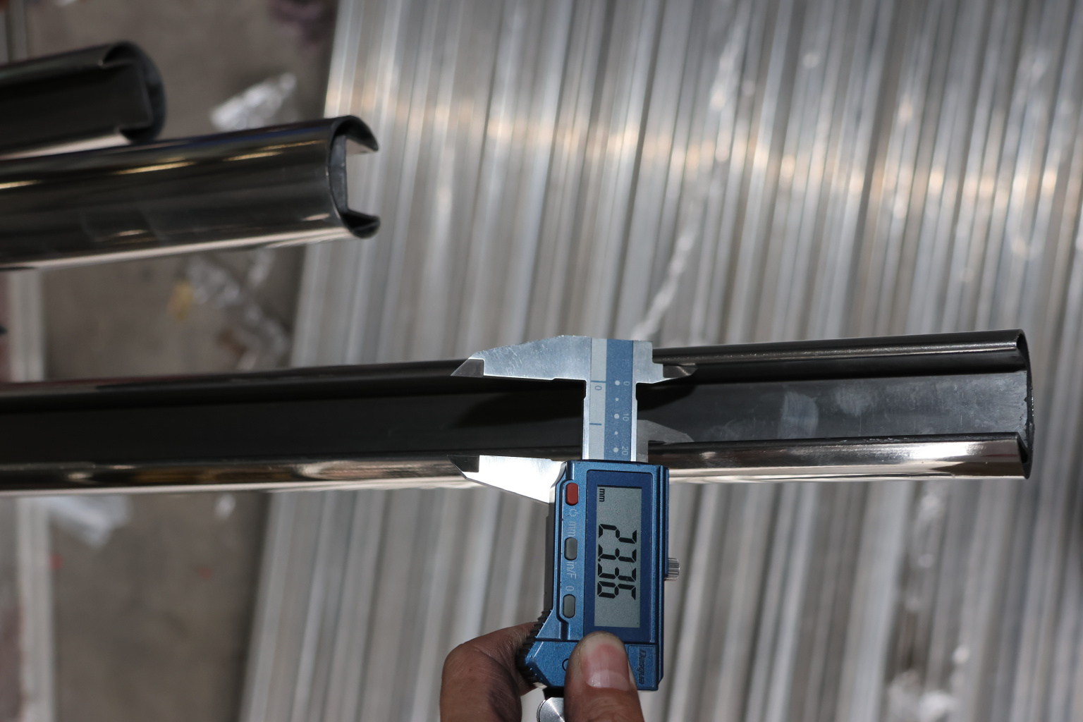 Труба Ø42.4 мм, с пазом 24х24 мм под стекло, тройная полировка 800GRIT, AISI 304